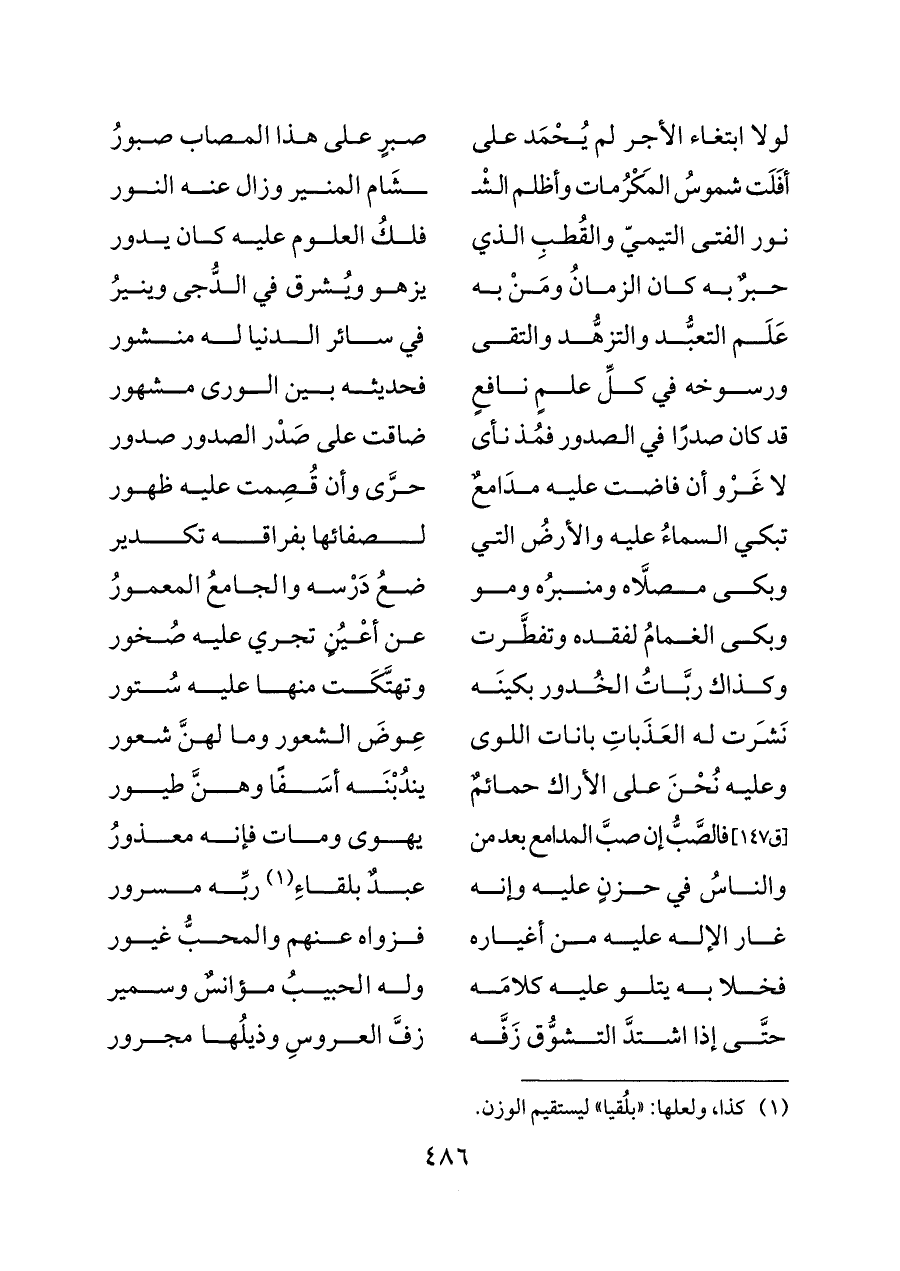 (¬١) كذا، ولعلها: «بلُقيا» ليستقيم الوزن.