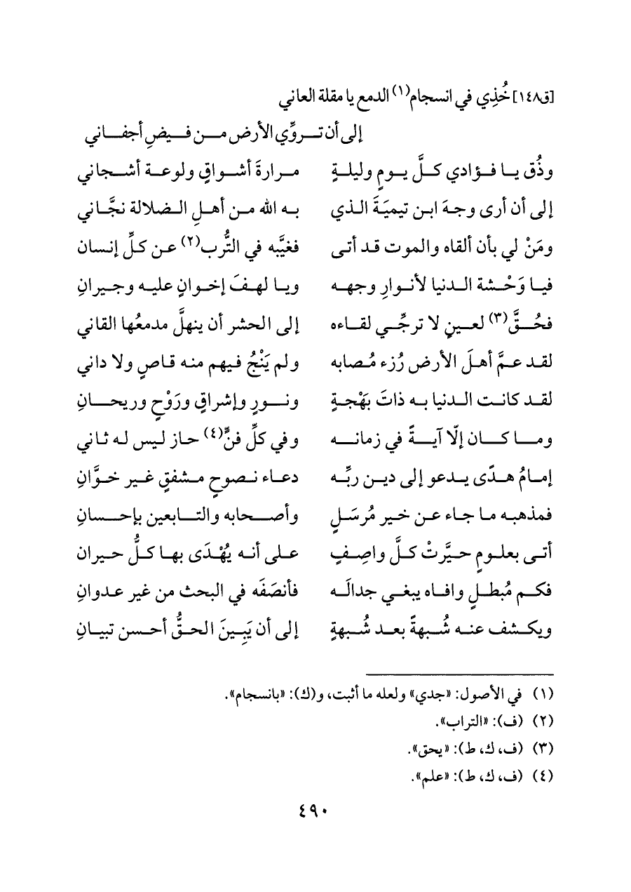 [ق ١٤٨] خُذِي في انسجام (¬١) الدمع يا مقلة العاني
