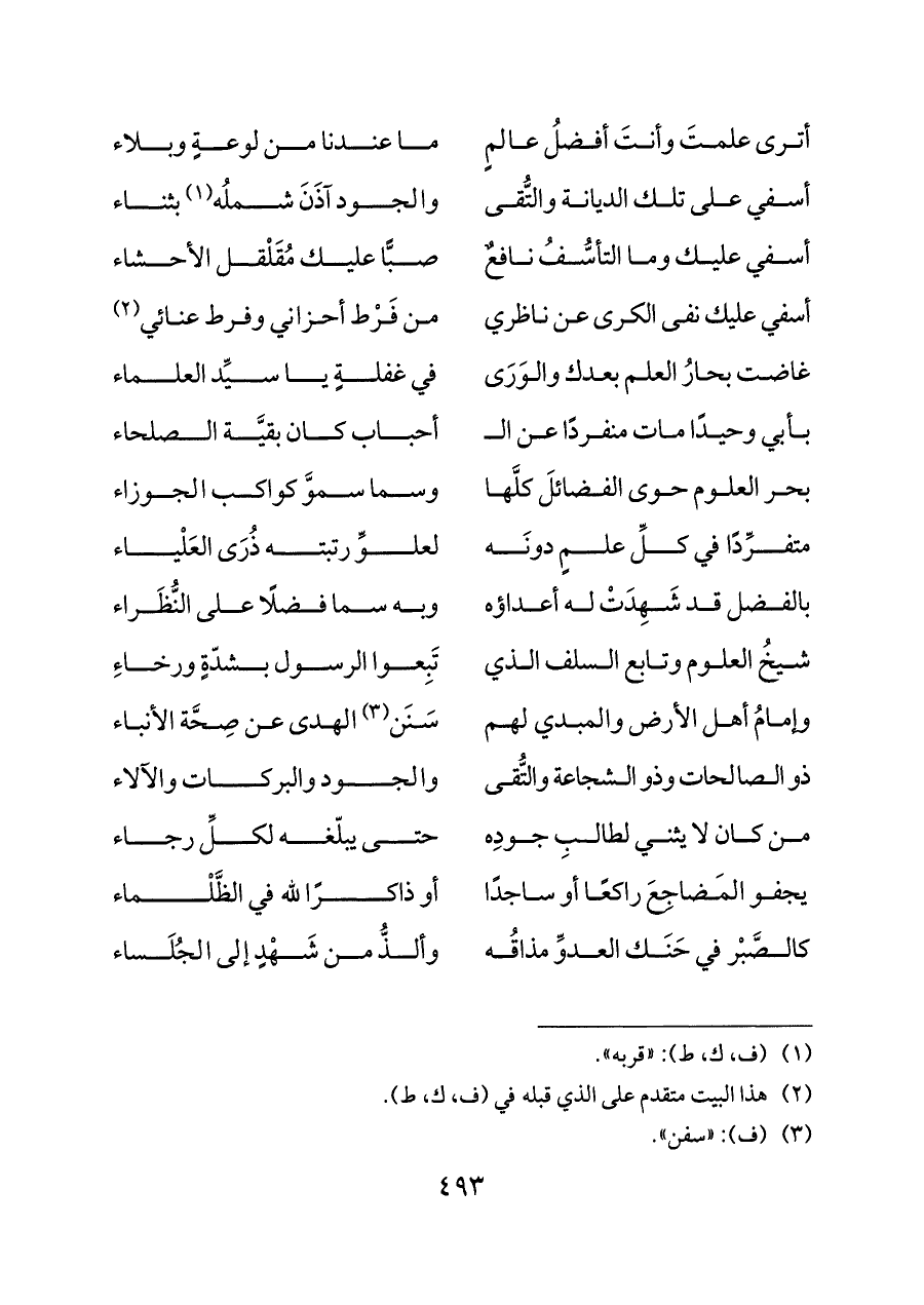 شيخُ العلوم وتابع السلف الذي ... تَبِعوا الرسول بشدّةٍ ورخاء
