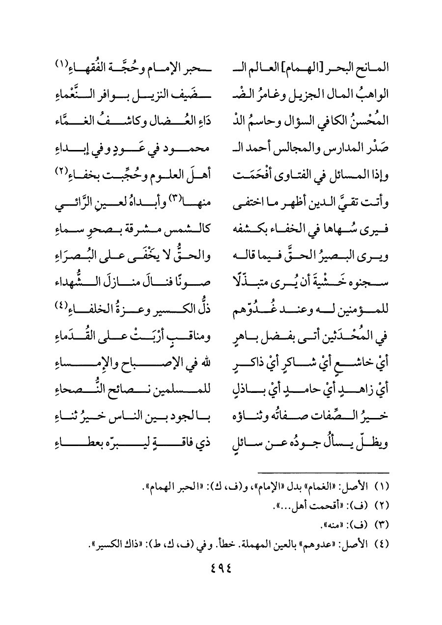 المانح البحر [الهمام] العالم الـ ... ـحبر الإمام وحُجَّة الفُقهاءِ (¬١)