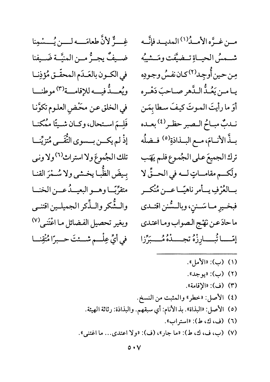 (¬٧) (ب، ف، ك، ط): «ما جار»، (ف): «ولا اعتدى ... ما اغتنى».