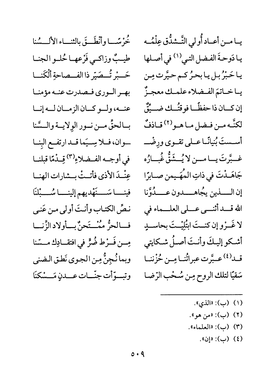 الله قد أثنى على العلماء في ... نصِّ الكتاب وأنتَ أولى من عَنى