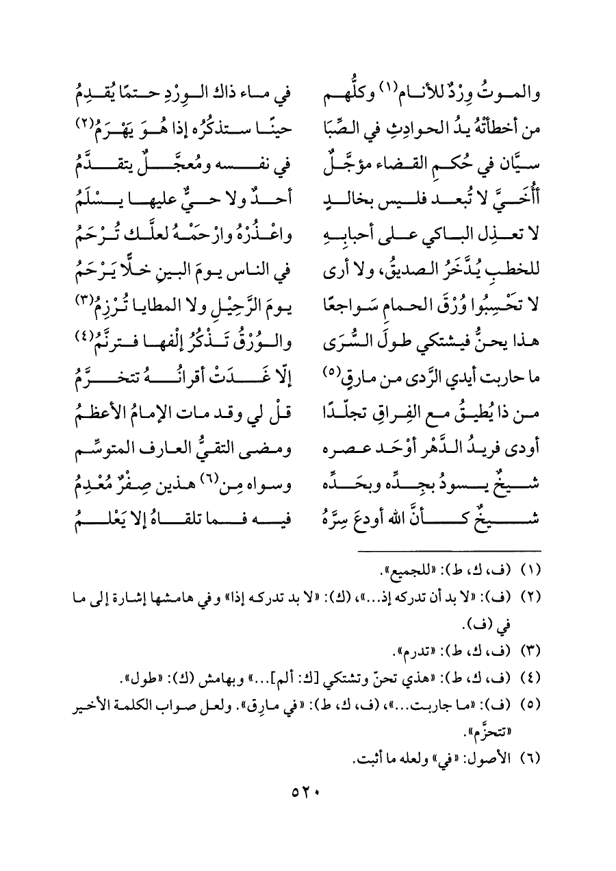 (¬٢) (ف): «لا بد أن تدركه إذ ... »، (ك): «لا بد تدركه إذا» وفي هامشها إشارة إلى ما في (ف).