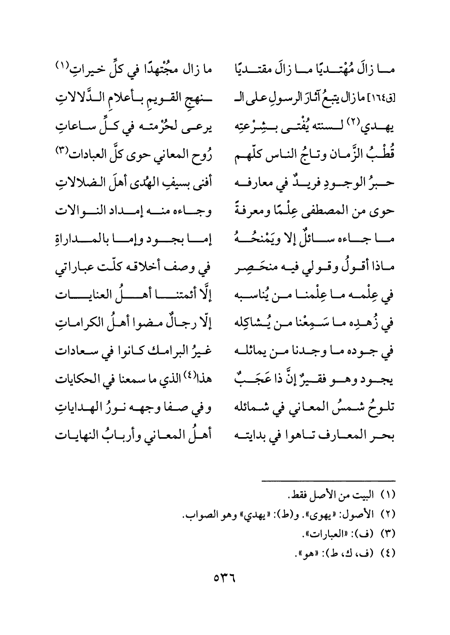 [ق ١٦٤] ما زال يتبعُ آثارَ الرسولِ على الـ ... ـنهجِ القويمِ بأعلامِ الدَّلالات