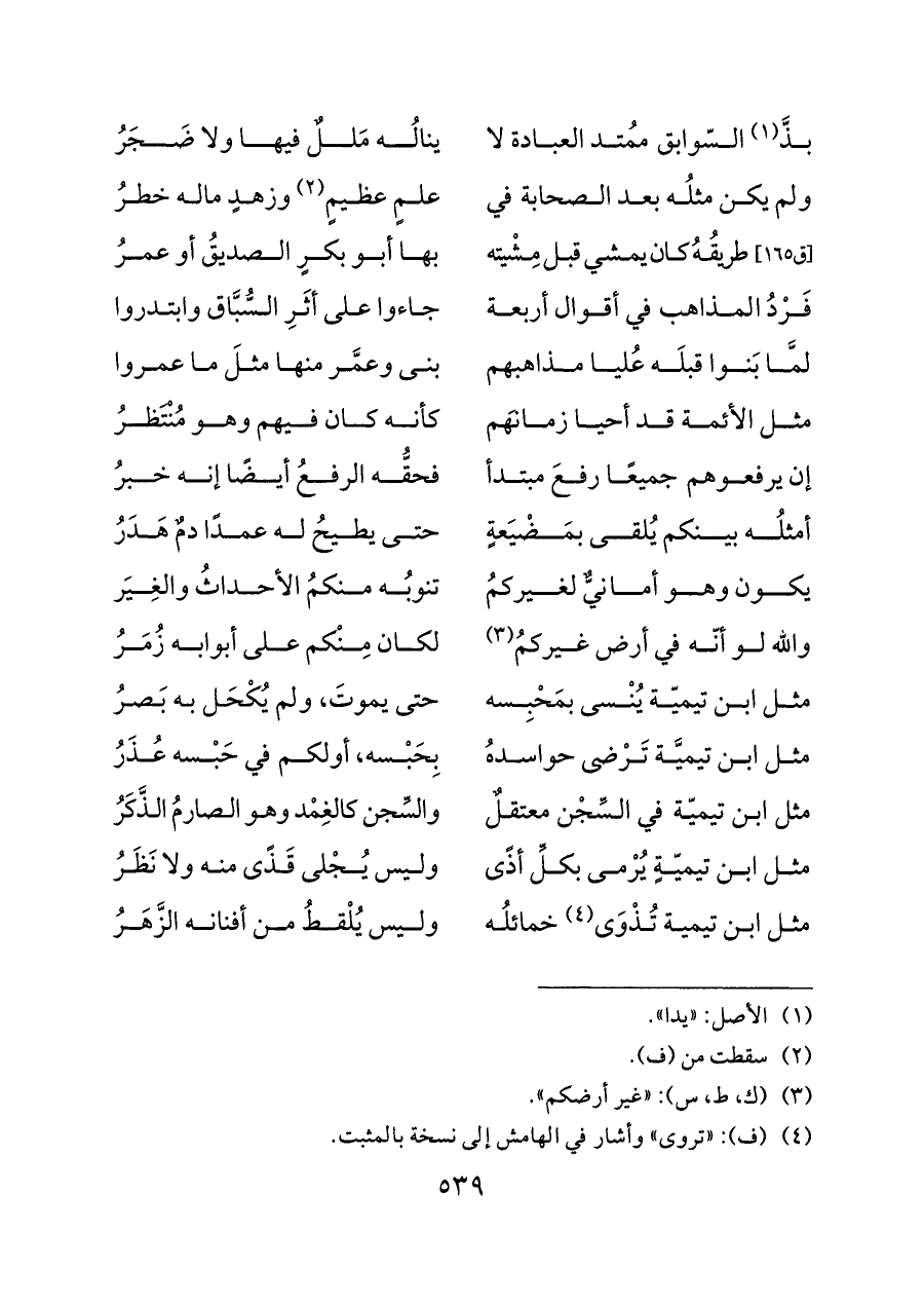 مثل ابن تيمية تُذْوَى (¬٤) خمائلُه ... وليس يُلْقطُ من أفنانه الزَّهَرُ