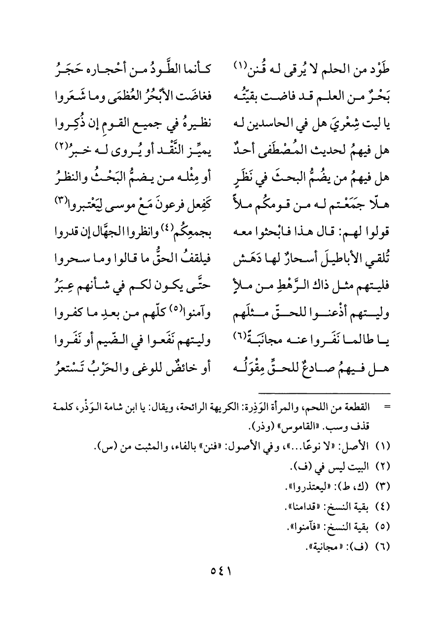 قولوا لهم: قال هذا فابْحثوا معه ... بجمعِكُم (¬٤) وانظروا الجهَّال إن قدروا
