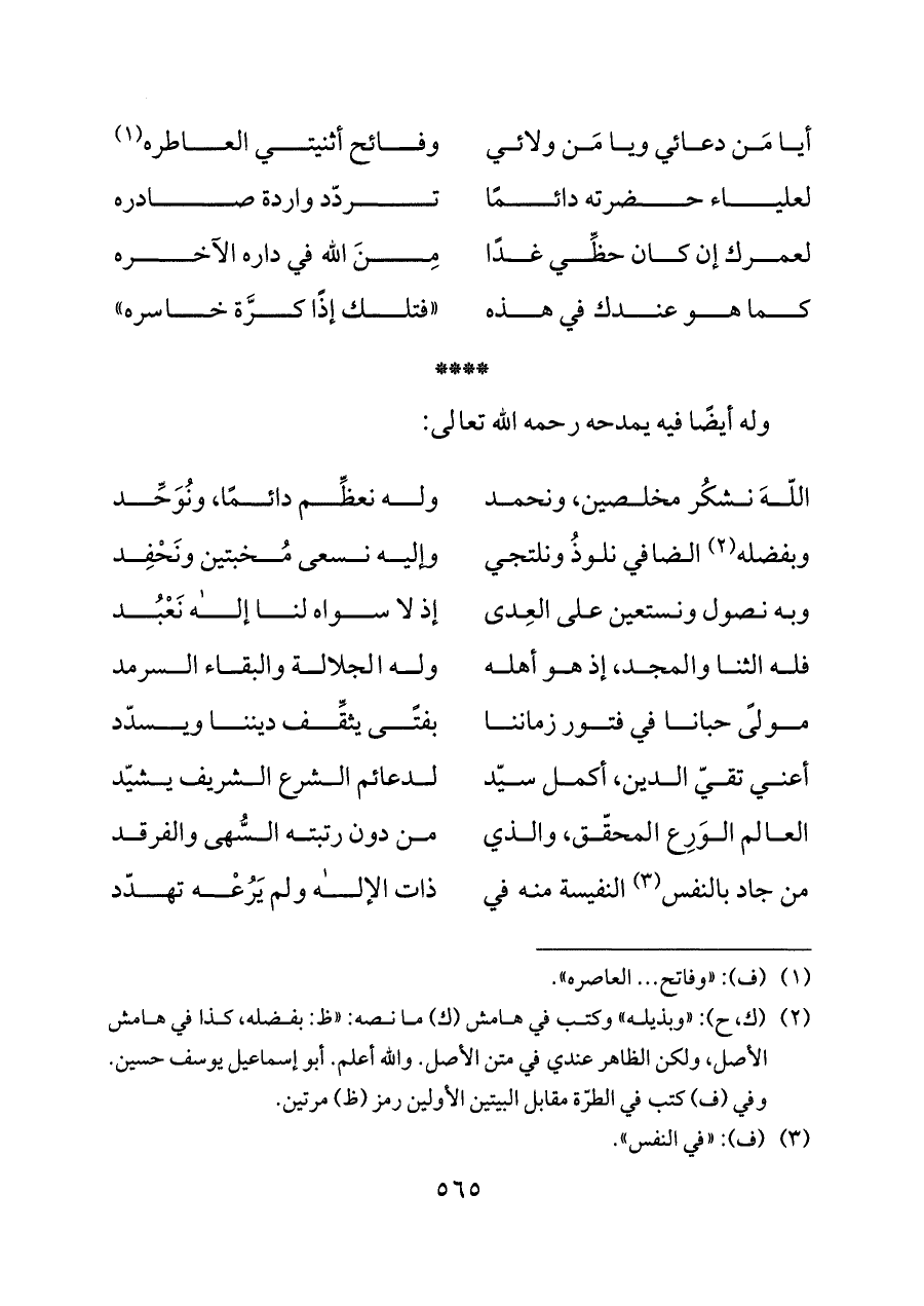 أيا مَن دعائي ويا مَن ولائي ... وفائح أثنيتي العاطره (¬١)