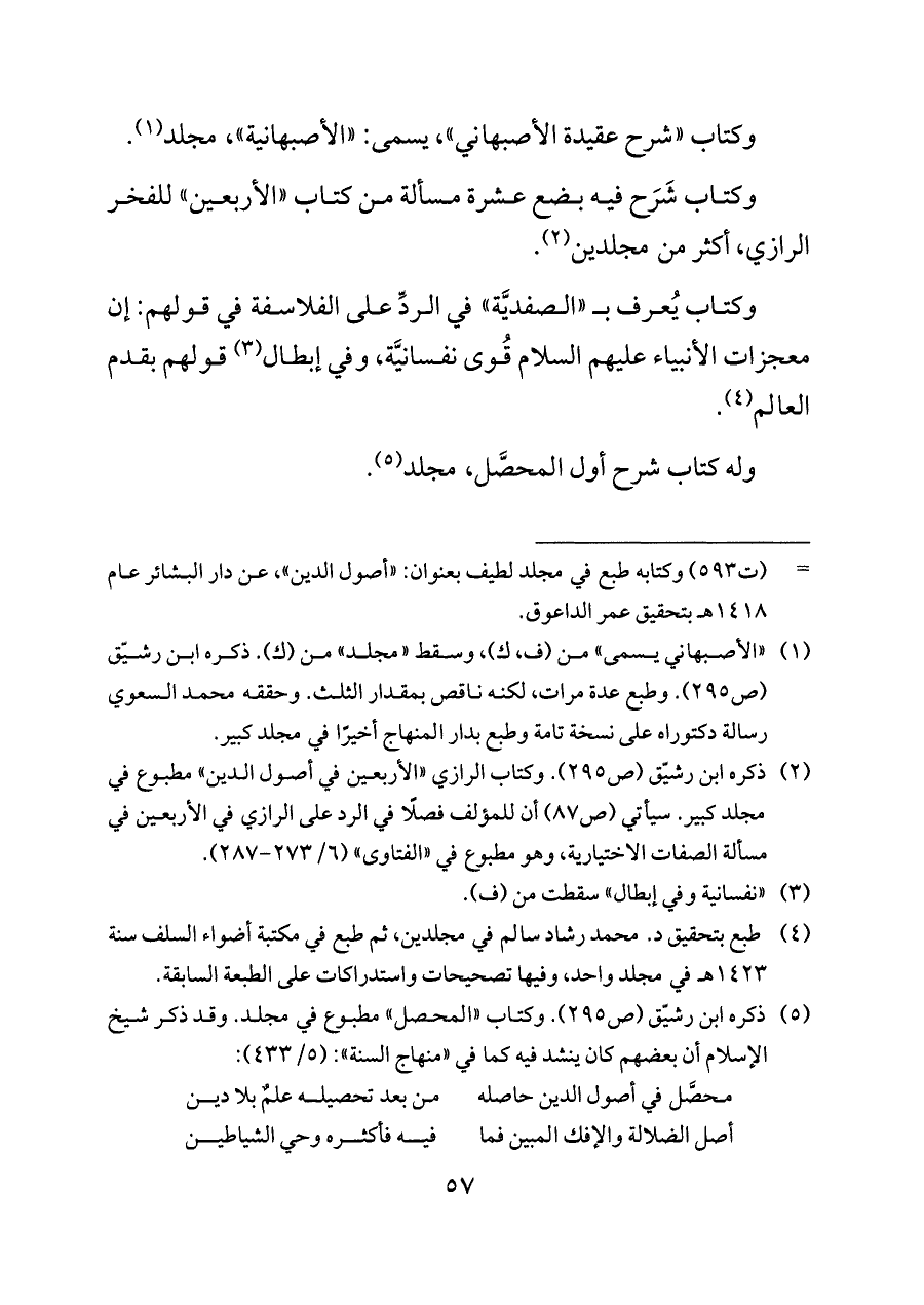 وكتاب «شرح عقيدة الأصبهاني»، يسمى: «الأصبهانية»، مجلد (¬١).