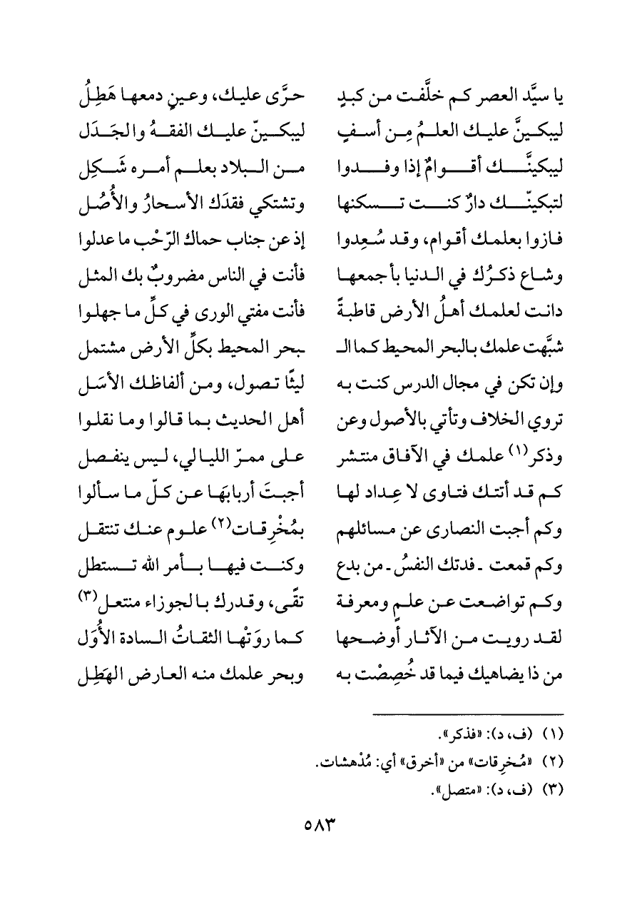 ليبكينَّ عليك العلمُ مِن أسفٍ ... ليبكينّ عليك الفقهُ والجَدَل