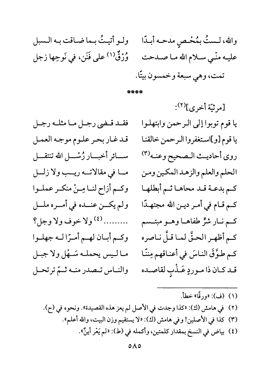 (¬٣) كذا في الأصلين! وفي هامش (ك): «لا يستقيم وزن البيت، والله أعلم».