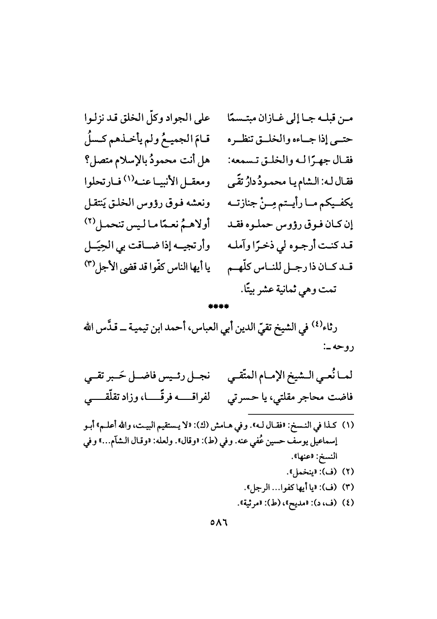 رثاء (¬٤) في الشيخ تقيّ الدين أبي العباس، أحمد ابن تيمية ــ قدَّس الله روحه ــ: