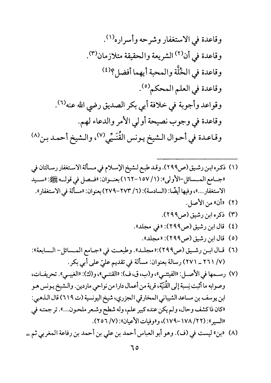 وقاعدة في أحوال الشيخ يونس القُنَيِّي (¬٧)، والشيخ أحمد بن (¬٨)