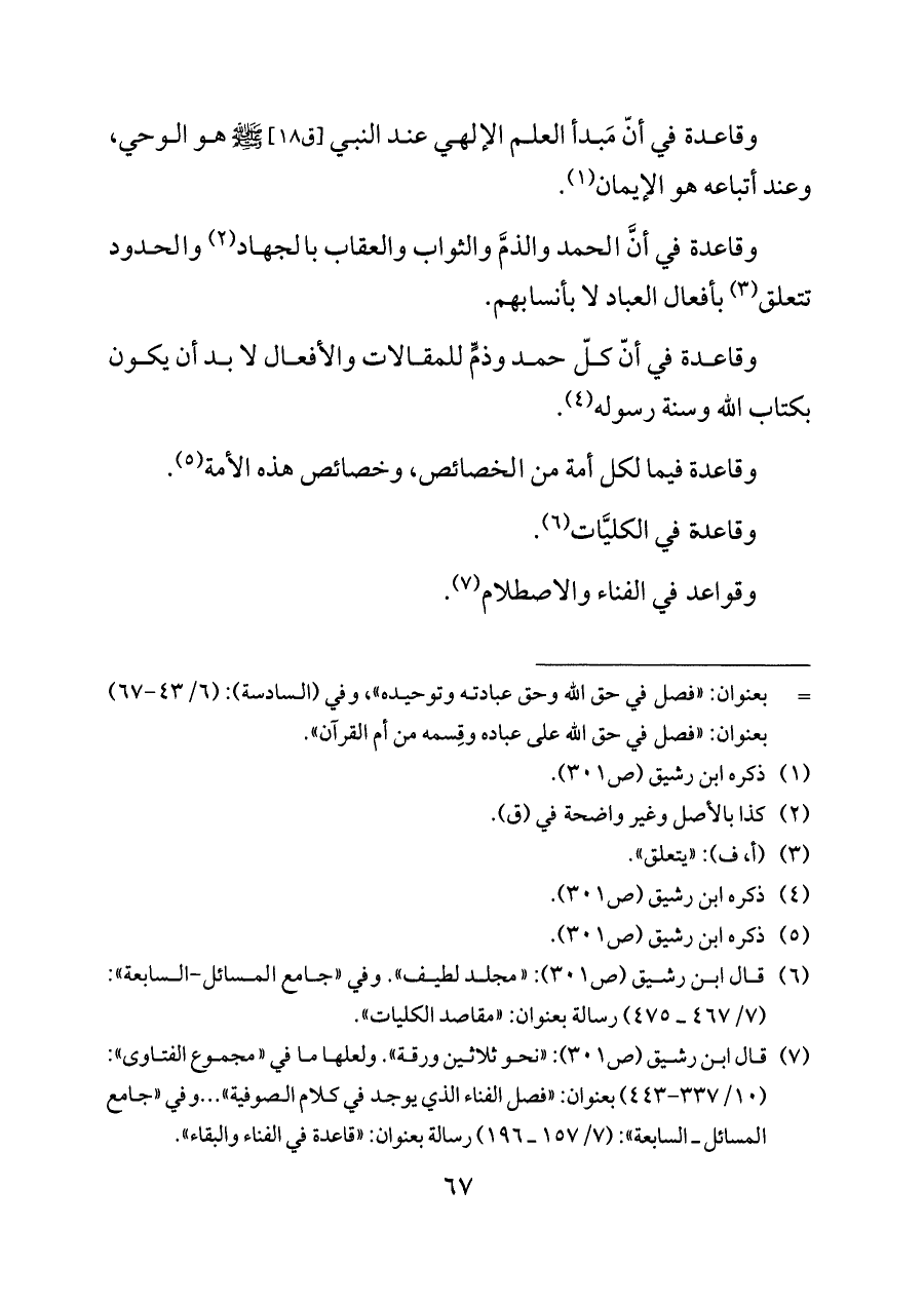 وقاعدة في أنّ مَبدأ العلم الإلهي عند النبي [ق ١٨] - صلى الله عليه وسلم - هو الوحي، وعند أتباعه هو الإيمان (¬١).