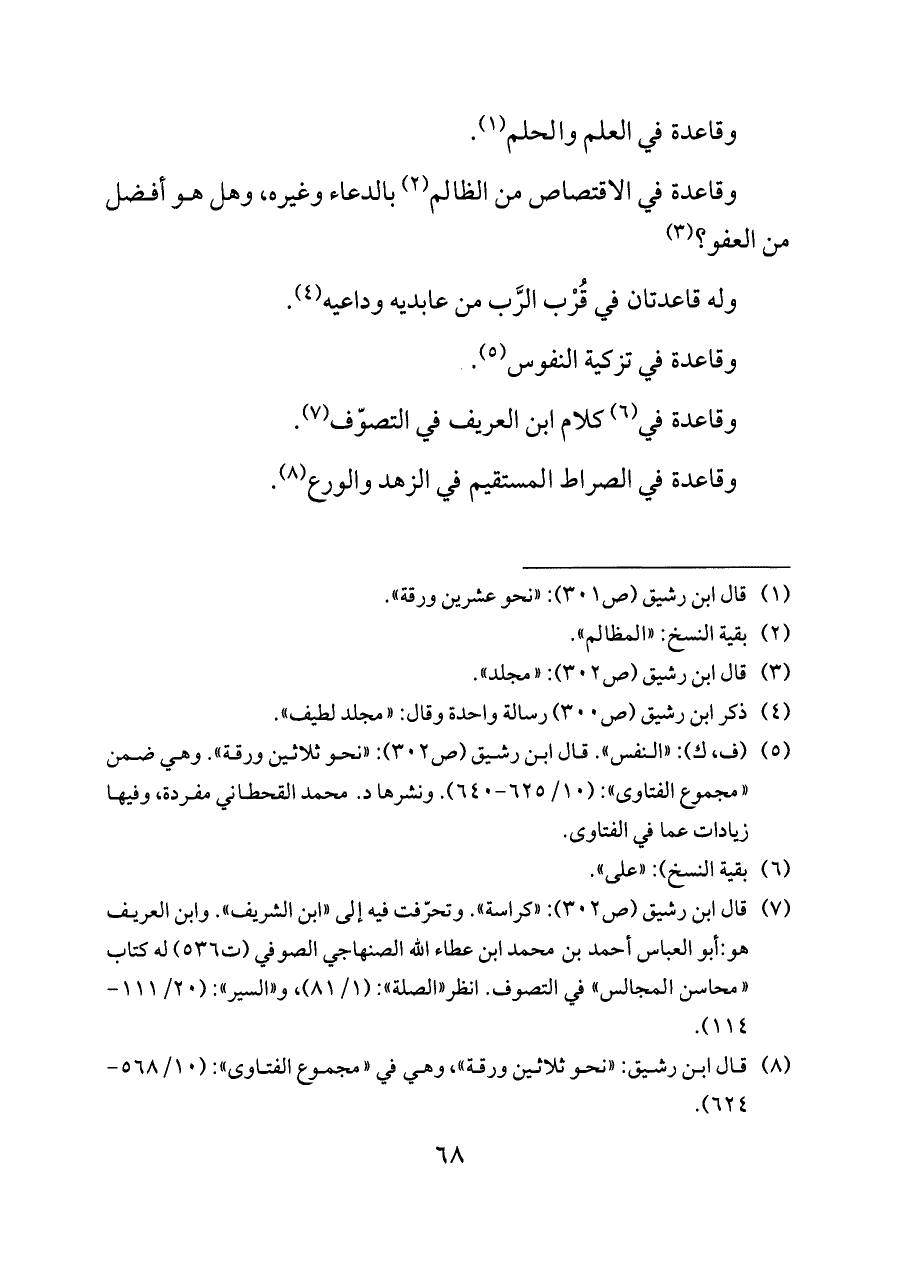 وقاعدة في الصراط المستقيم في الزهد والورع (¬٨).
