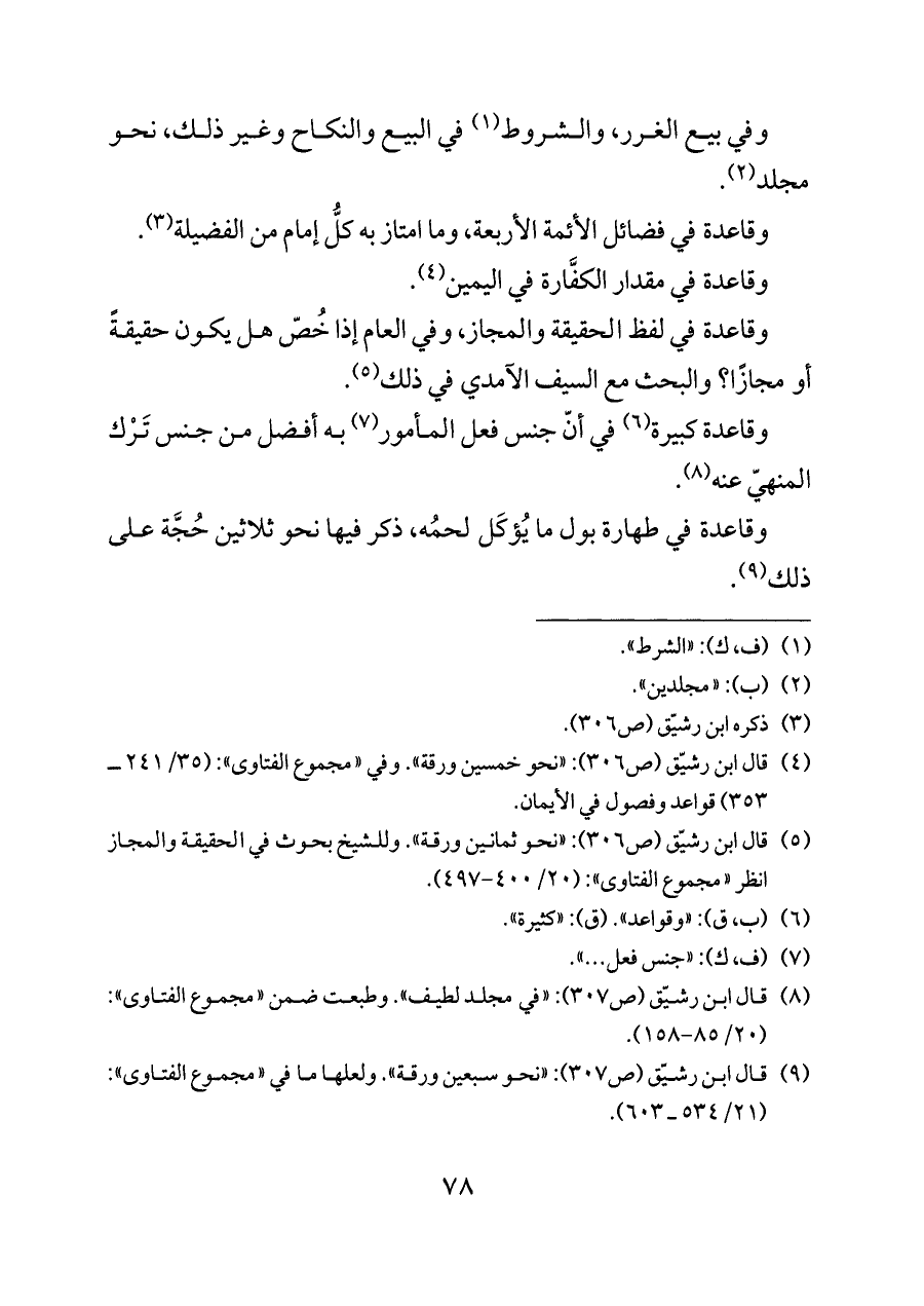 (¬٤) قال ابن رشيّق (ص ٣٠٦): «نحو خمسين ورقة». وفي «مجموع الفتاوى»: (٣٥/ ٢٤١ ــ ٣٥٣) قواعد وفصول في الأيمان.