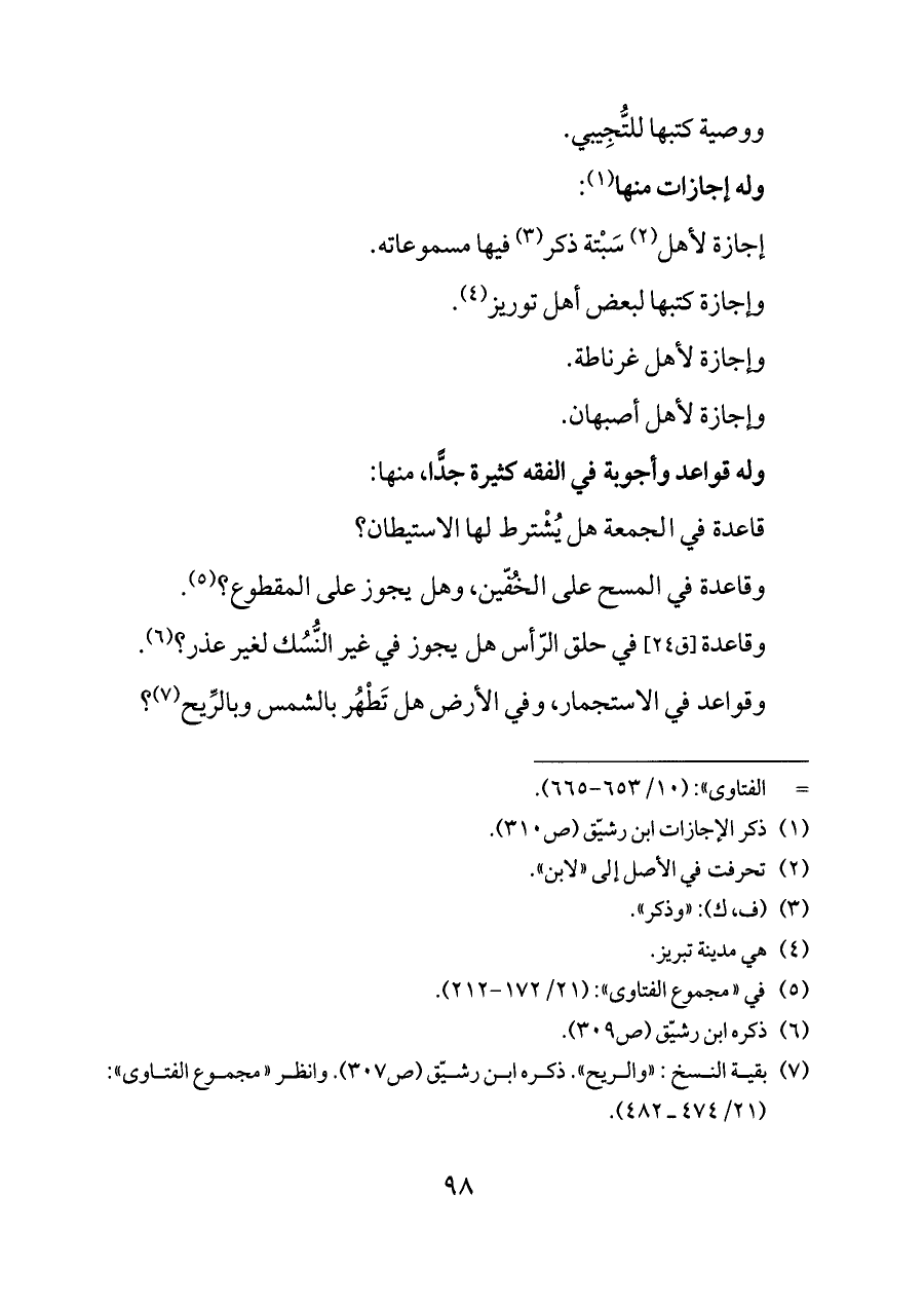 (¬١) ذكر الإجازات ابن رشيّق (ص ٣١٠).