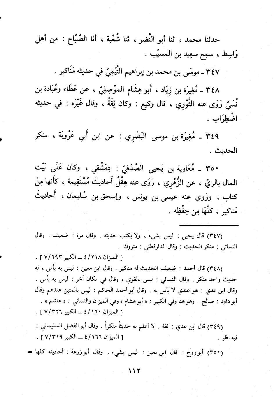 367 - مثنى بن الصَّباح أَبُو عبد الله كناه الثَّوْريّ عَن عَطاء وَعَمْرو بن شُعَيْب قَالَ يحيى لم نتركه من أجل عَمْرو بن شُعَيْب وَلَكِن كَانَ مِنْهُ اخْتِلَاط فِي عقله