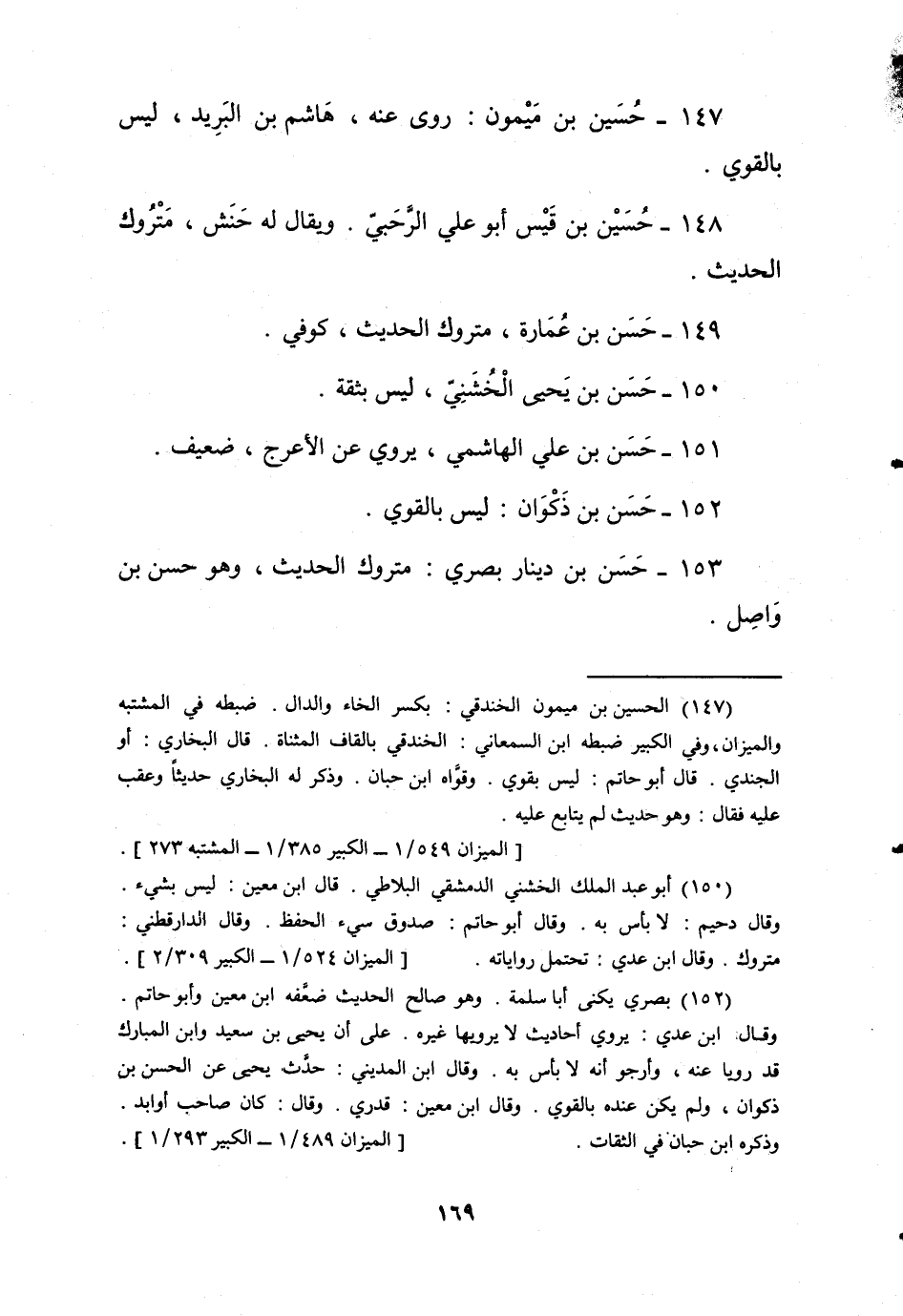148 - حسين بن قيس أبو علي الرحبي ويقال له حنش متروك الحديث