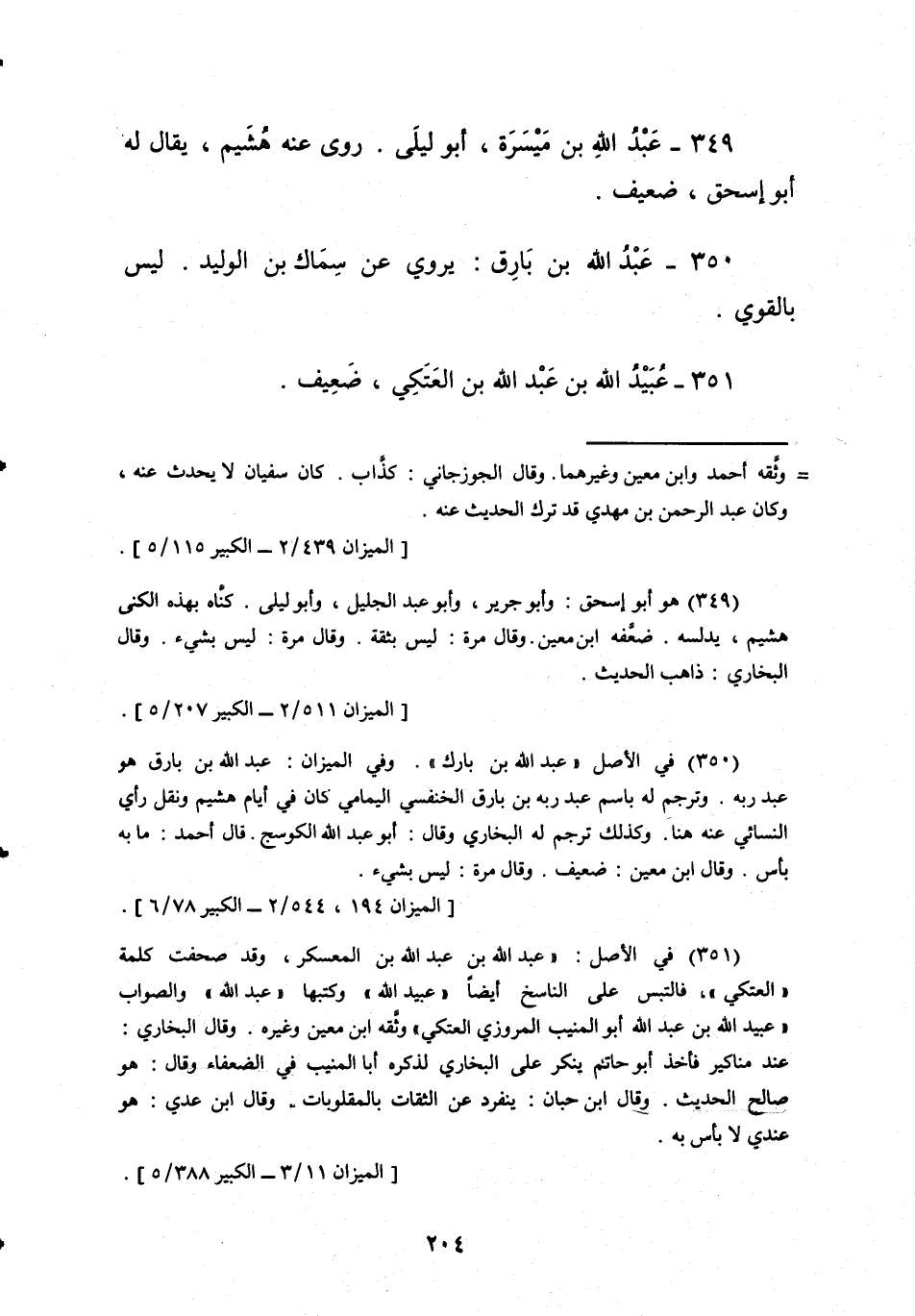 349 - عبد الله بن ميسرة أبو ليلى روى عنه هشيم يقال له أبو إسحاق ضعيف