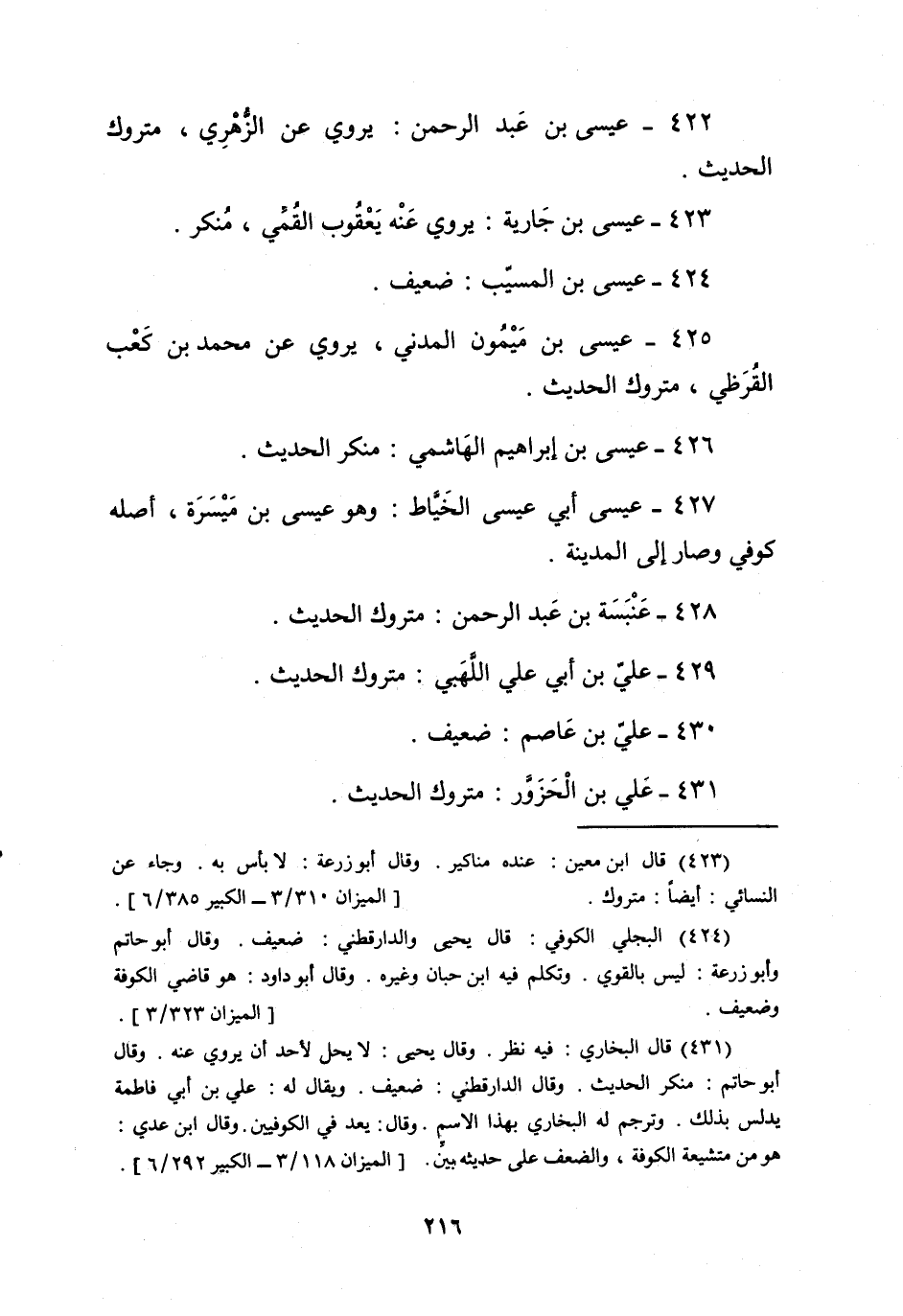 425 - عيسى بن ميمون المدني يروي عن محمد بن كعب القرظي متروك الحديث