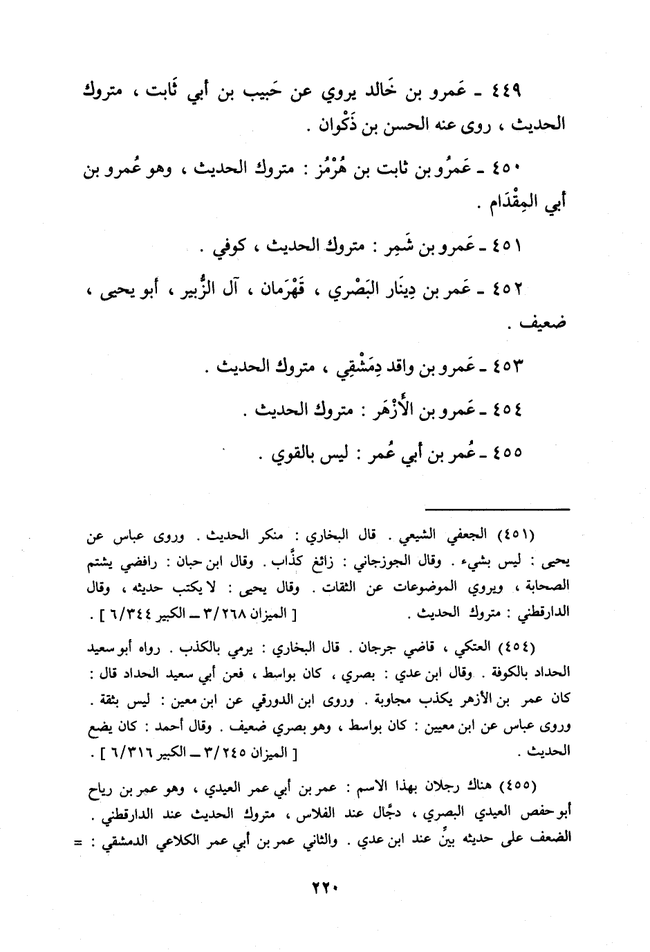 450 - عمرو بن ثابت بن هرمز متروك الحديث وهو عمرو بن أبي المقدام
