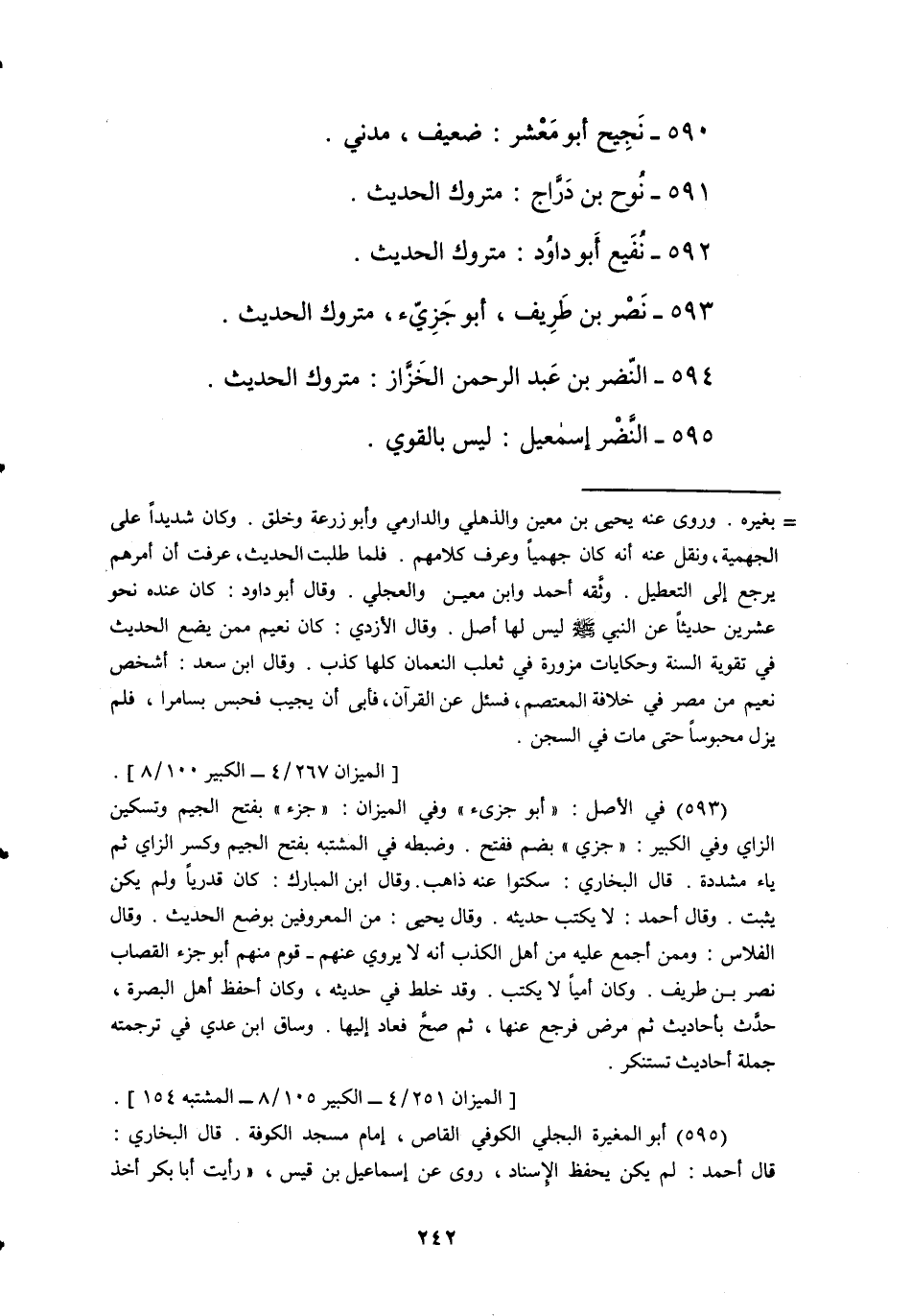 593 - نصر بن طريف أبو جزي متروك الحديث