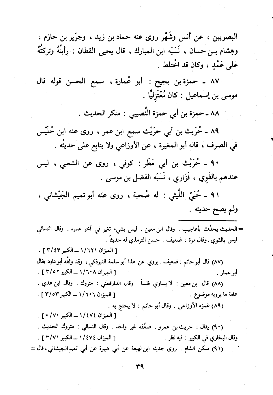 99 - حشرج بن نَبَاته سمع سعيد بن جهمان عَن سفينة أَن النَّبِي صلى الله عَلَيْهِ وَسلم قَالَ لأبي بكر وَعمر وَعُثْمَان هَؤُلَاءِ الْخُلَفَاء بعدِي وَهَذَا حَدِيث لم يُتَابع عَلَيْهِ لِأَن عمر بن الْخطاب وَعلي بن أبي طَالب قَالَا لم يسْتَخْلف النَّبِي صلى الله عَلَيْهِ وَسلم