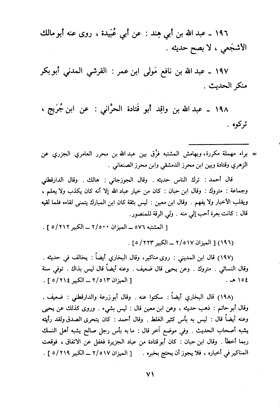 210 - عبد الرَّحْمَن بن يزِيد السّلمِيّ يعد فِي التَّابِعين عَن مَكْحُول مُرْسل روى عَنهُ الْوَلِيد بن مُسلم مَنَاكِير روى عَنهُ أهل الْكُوفَة أَبُو أُسَامَة وحسين الْجعْفِيّ فَقَالُوا عبد الرَّحْمَن بن يزِيد بن جَابر قَالَ أخْبرت عَن مَرْوَان عَن الْوَلِيد بن مُسلم أَنه قَالَ لَا ترووا عَنهُ فَإِنَّهُ كَذَّاب