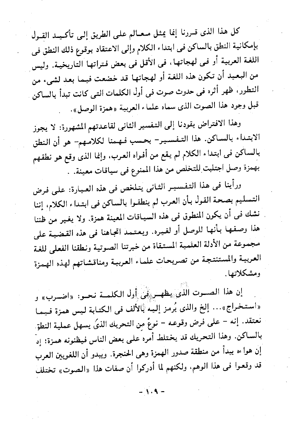 كل هذا الذي قررنا إنما يمثل معالم على الطريق إلى تأكيد القول بإمكانية النطق بالساكن في ابتداء الكلام وإلى الاعتقاد بوقوع ذلك النطق في اللغة العربية أو في لهجاتها، في الأقل في بعض فتراتها التاريخية. وليس من البعيد أن تكون هذه اللغة أو لهجاتها قد خضعت فيما بعد لشيء من التطور، ظهر أثره في حدوث صوت في أول الكلمات التي كانت تبدأ بالساكن قبل وجود هذا الصوت الذي سماه علماء العربية "همزة الوصل".