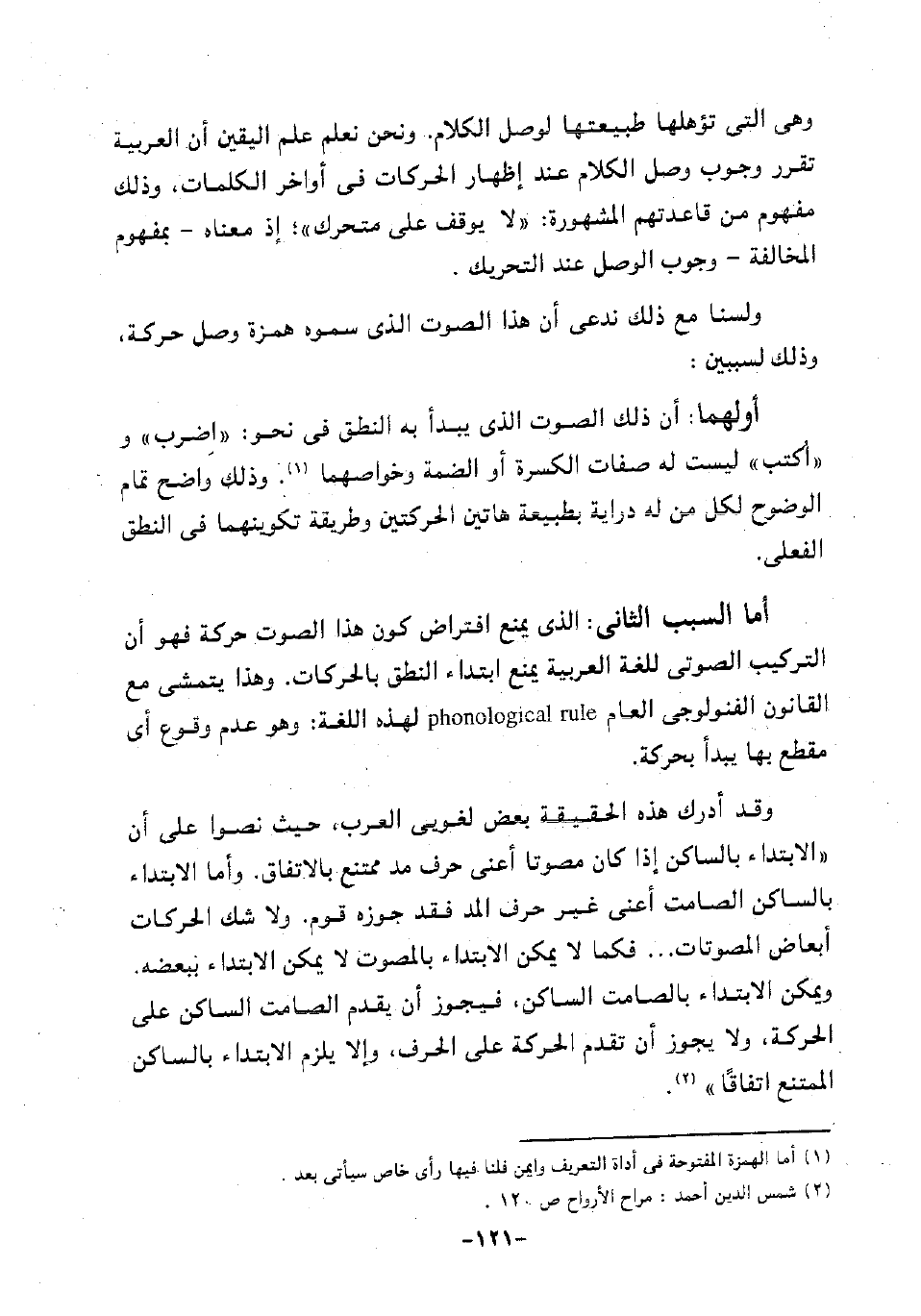 ولسنا مع ذلك ندعي أن هذا الصوت الذي سموه همزة وصل حركة، وذلك لسببين: