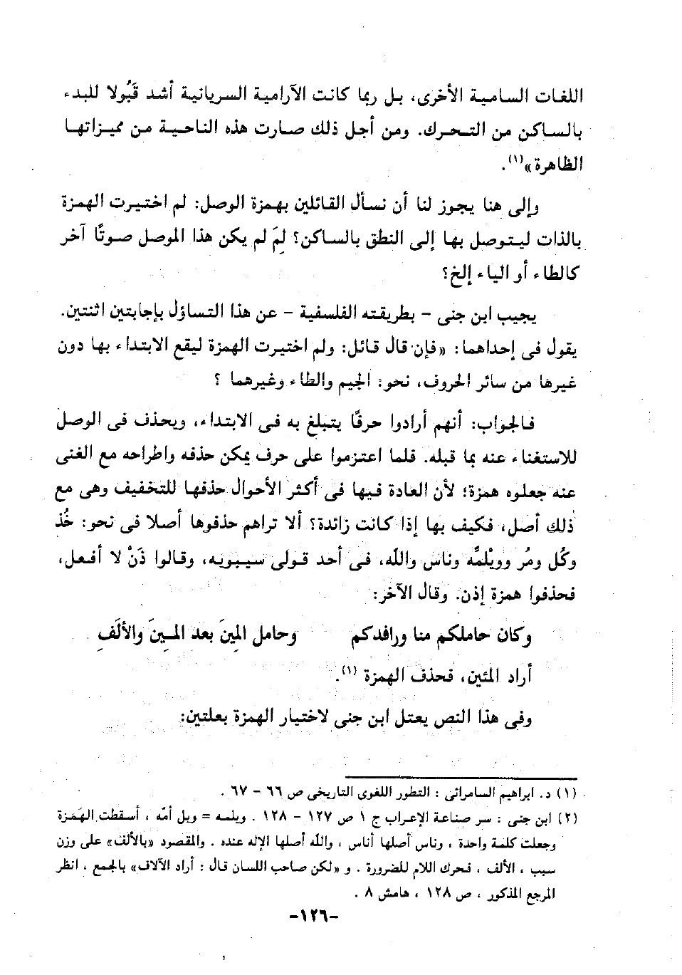 2 ابن جني: سر صناعة الإعراب جـ1 ص127-128. ويلمه = ويل أمه، أسقطت الهمزة وجعلت كلمة واحدة، وناس أصلها أناس، والله أصلها الإله عنده. والمقصود "بالألف" على وزن سبب، الألف، فحرك اللام للضرورة. و"لكن صاحب اللسان قال: أراد الآلاف" بالجمع، انظر المرجع المذكور، ص128، هامش8.