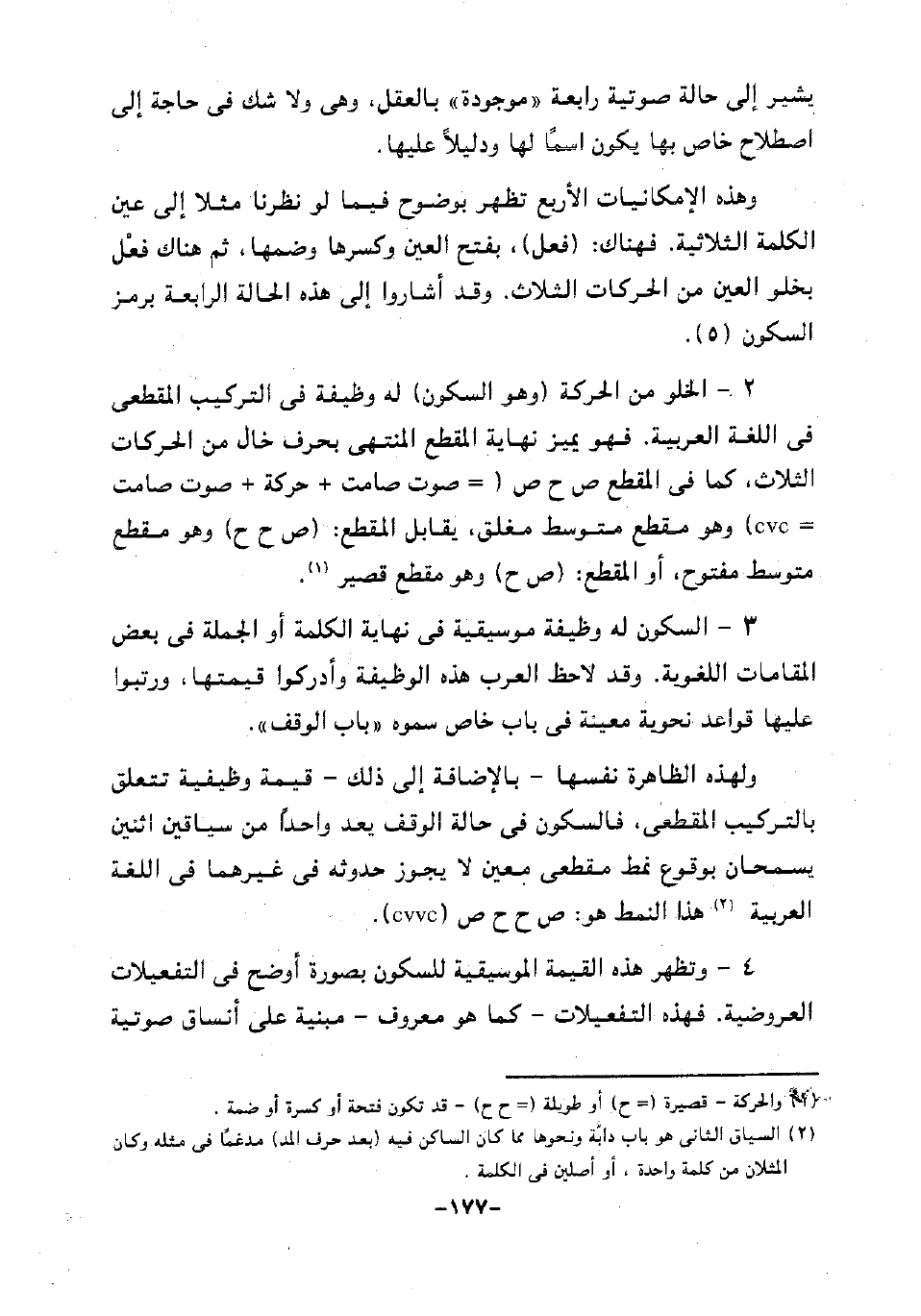 3- السكون له وظيفة موسيقية في نهاية الكلمة أو الجملة في بعض المقامات اللغوية. وقد لاحظ العرب هذه الوظيفة وأدركوا قيمتها، ورتبوا عليها قواعد نحوية معينة في باب خاص سموه "باب الوقف".