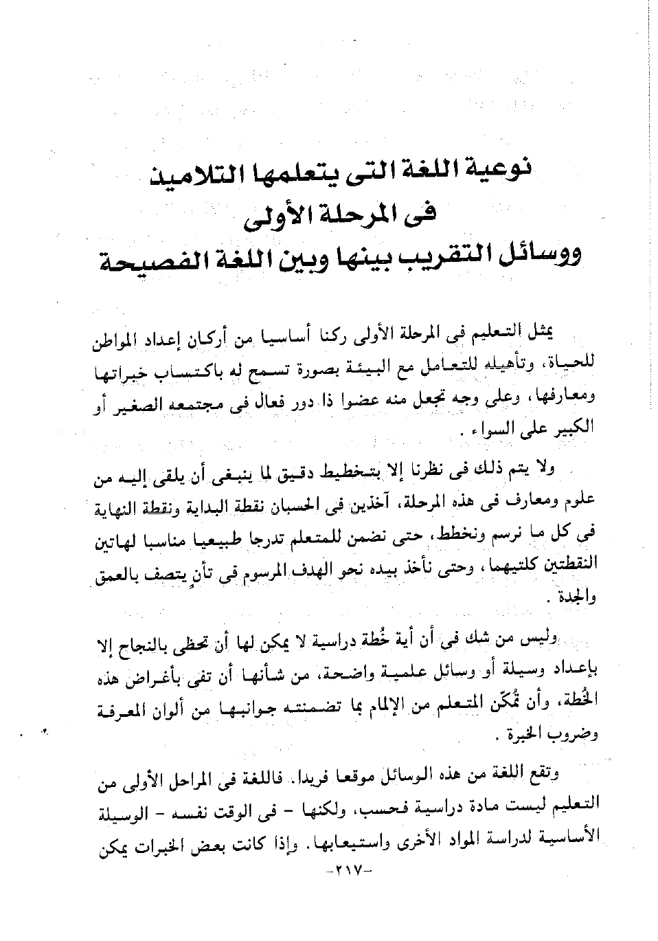 المبحث الخامس: نوعية اللغة التي يتعلمها التلاميذ في المرحلة الأولى ووسائل التقريب بينها وبين اللغة الفصيحة