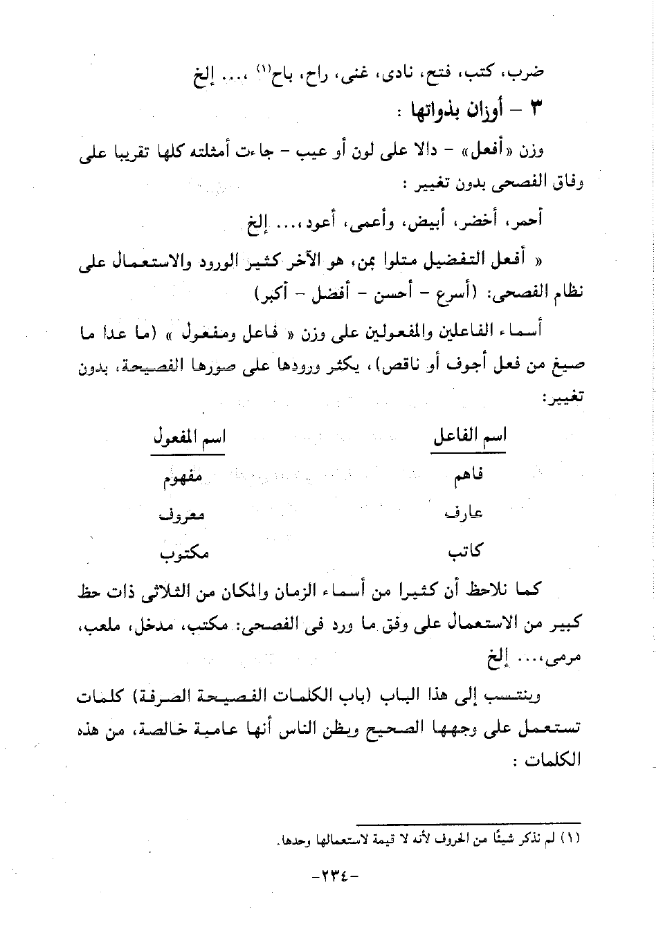 أسماء الفاعلين والمفعولين على وزن "فاعل ومفعول" "ما عدا ما صيغ من فعل أجوف أو ناقص"، يكثر ورودها على صورها الفصيحة، بدون تغيير: