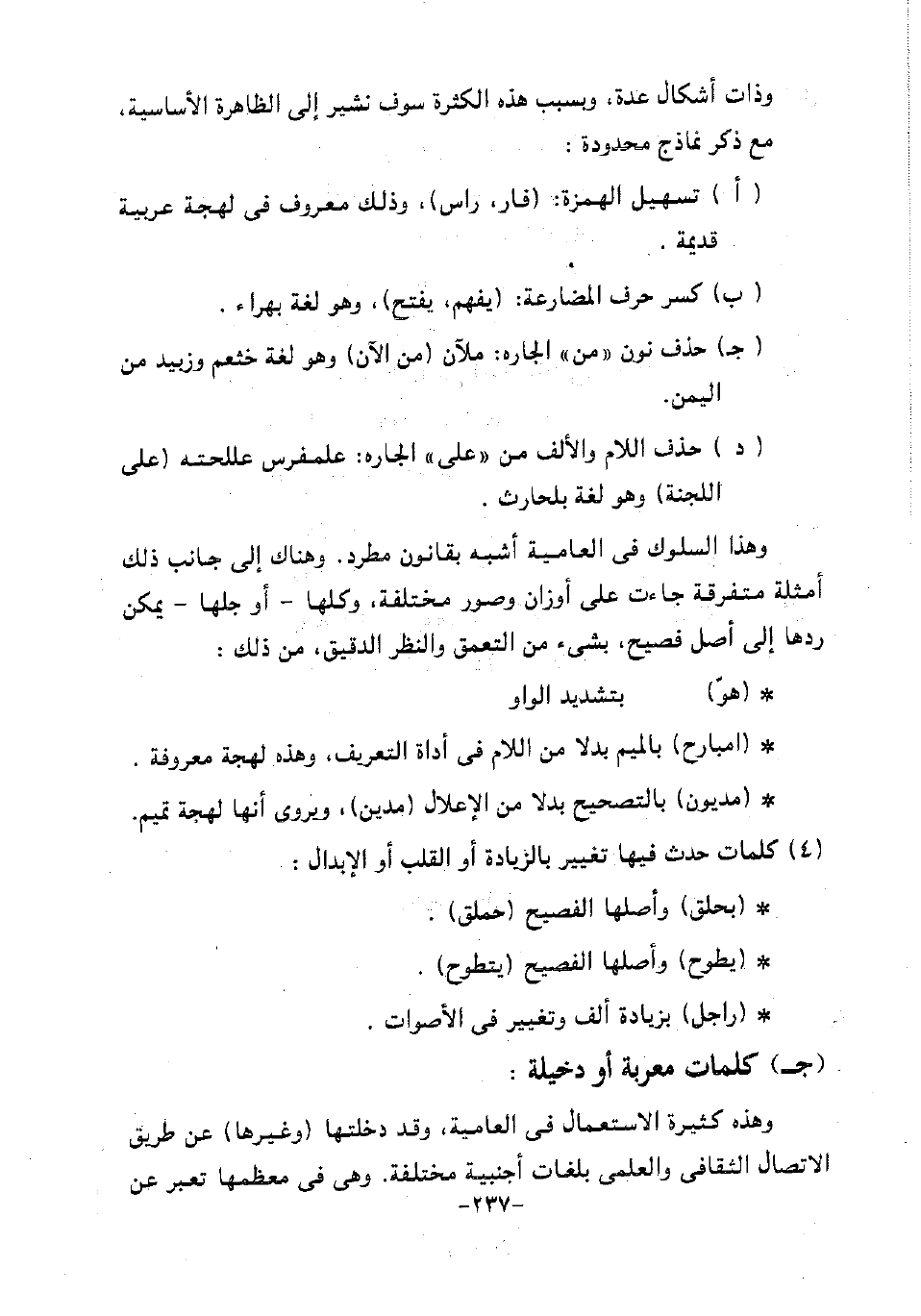 د- حذف اللام والألف من "على" الجاره. علمفرس عللحته "على اللجنة" وهو لغة بلحارث.