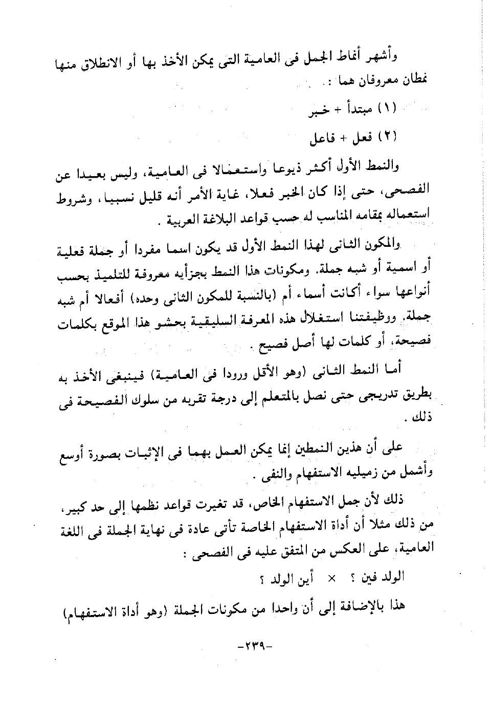 أما النمط الثاني "وهو الأقل ورودًا في العامية" فينبغي الأخذ به بطريق تدريجي حتى نصل بالمتعلم إلى درجة تقربه من سلوك الفصيحة في ذلك.