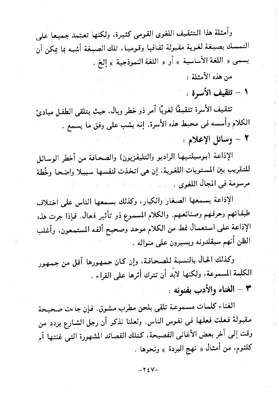 الإذاعة "بوسيلتيها الراديو والتليفزيون" والصحافة من أخطر الوسائل للتقريب بين المستويات اللغوية، إن هي اتخذت لنفسها سبيلا واضحا وخطة مرسومة في المجال اللغوي.