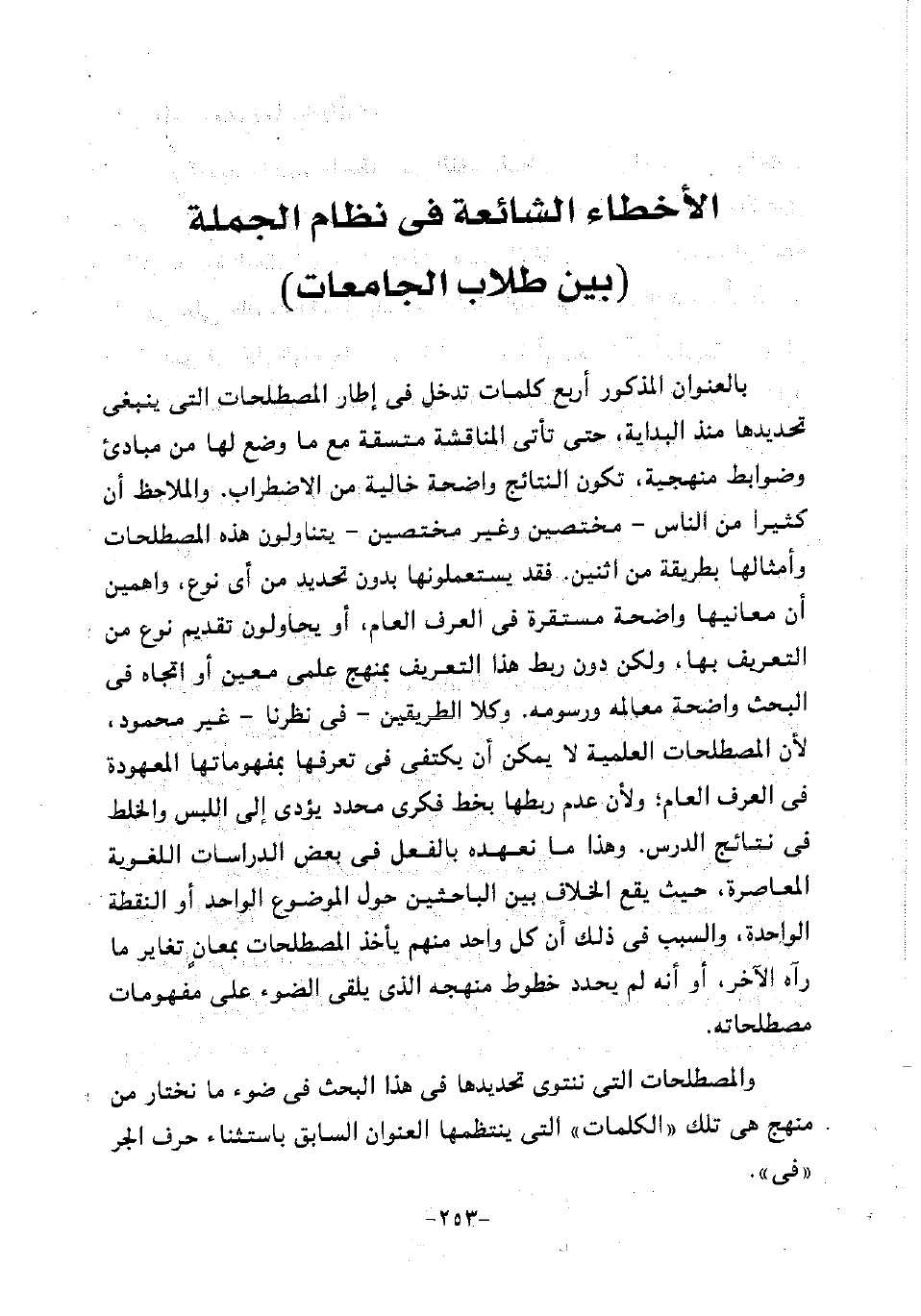 المبحث السادس: الأخطاء الشائعة في نظام الجملة بين طلاب الجامعات