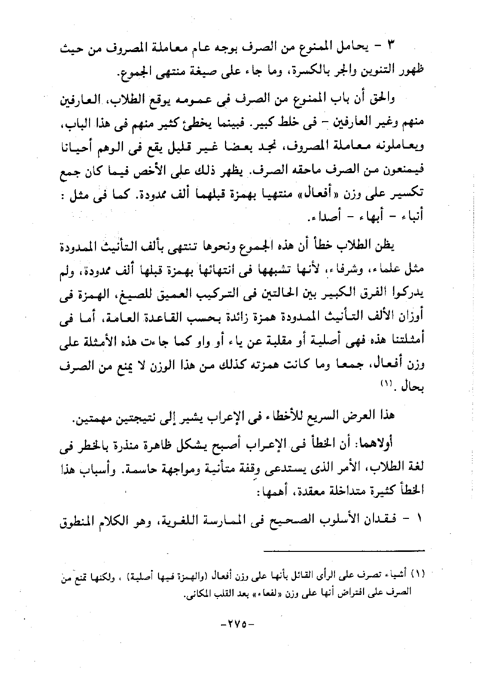 أولاهما: أن الخطأ في الإعراب أصبح يشكل ظاهرة منذرة بالخطر في لغة الطلاب، الأمر الذي يستدعي وقفة متأنية ومواجهة حاسمة. وأسباب هذا الخطأ كثيرة متداخلة معقدة، أهمها: