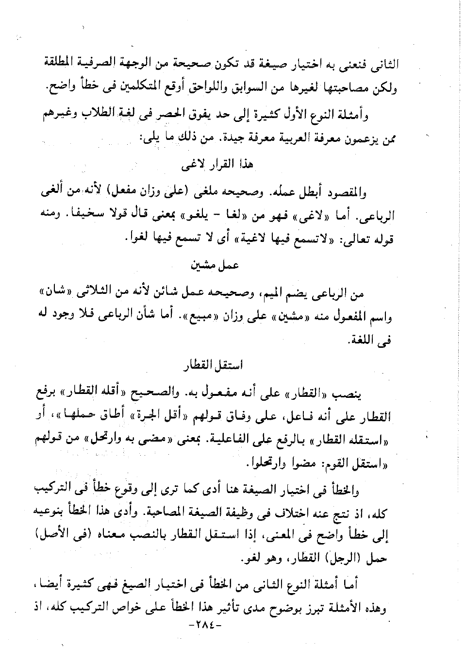 الثاني فنعني به اختيار صيغة قد تكون صحيحة من الوجهة الصرفية المطلقة ولكن مصاحبتها لغيرها من السوابق واللواحق أوقع المتكلمين في خطأ واضح.