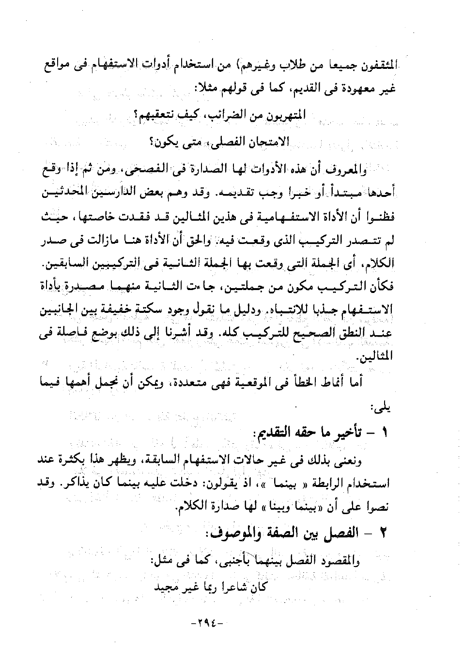 المثقفون جميعا من طلاب وغيرهم" من استخدام أدوات الاستفهام في مواقع غير معهودة في القديم، كما في قولهم مثلا: