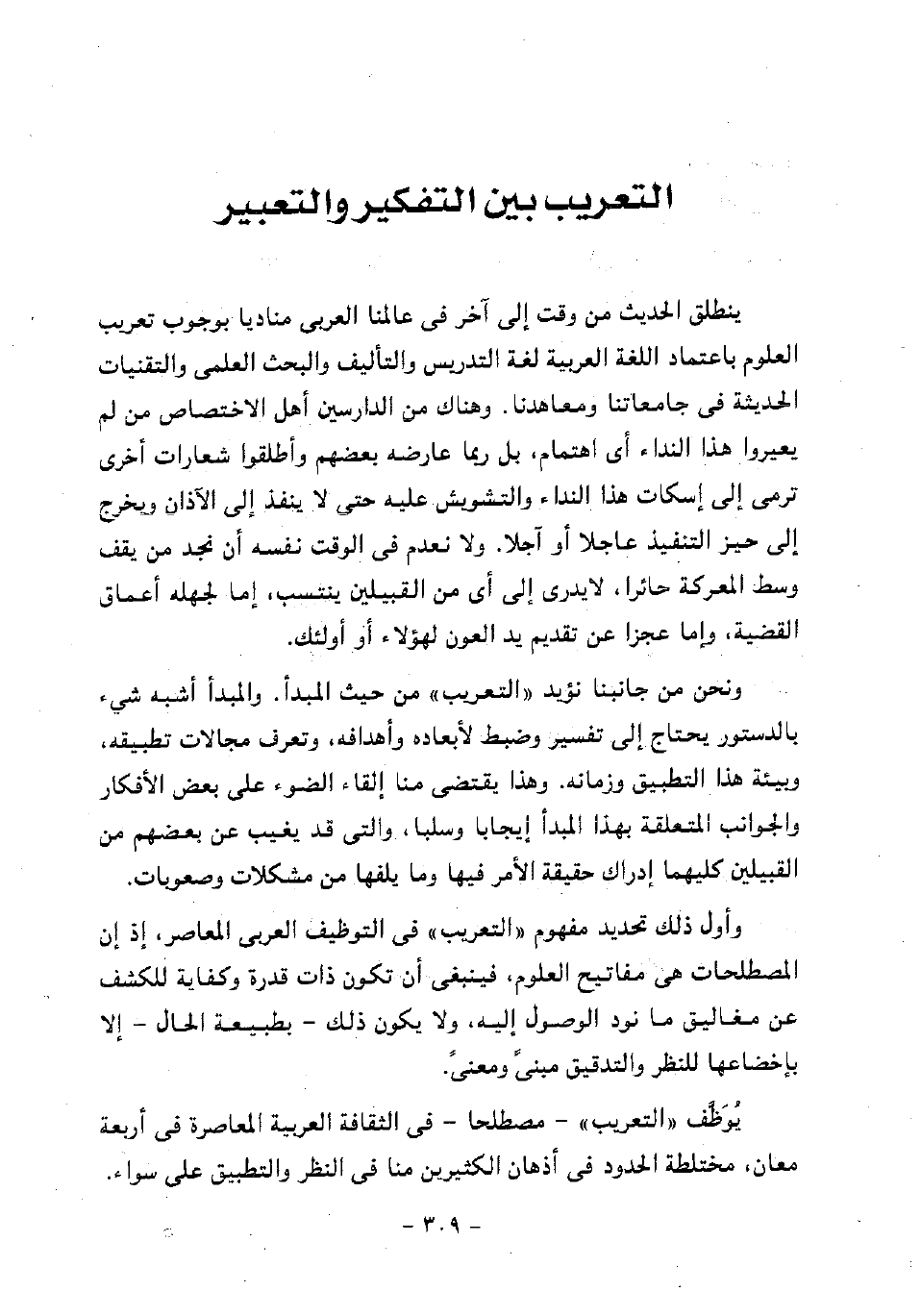 المبحث السابع: التعريب بين التفكير والتعبير
