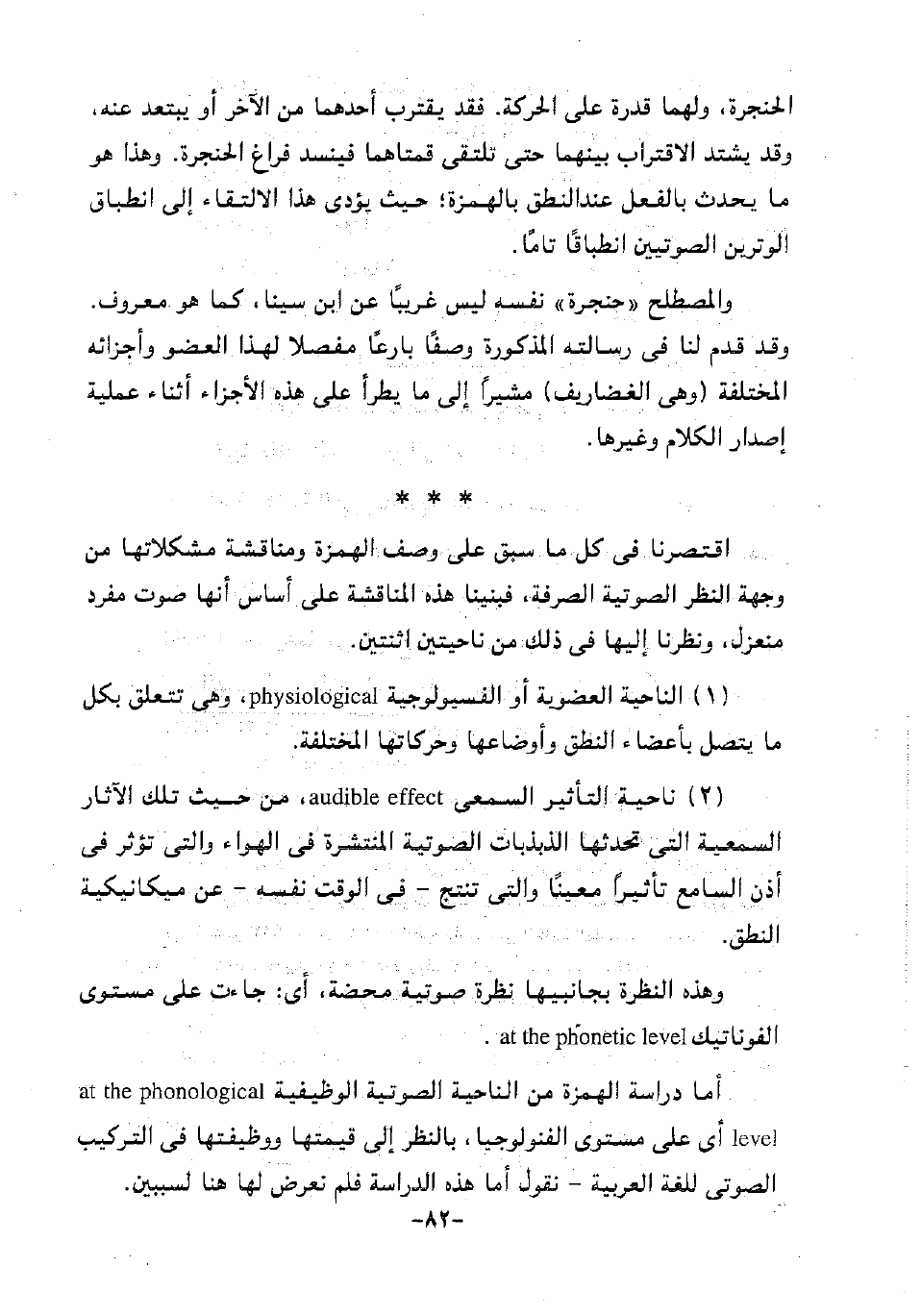 أما دراسة الهمزة من الناحية الصوتية الوظيفية at the phonological level أي على مستوى الفنولوجيا، بالنظر إلى قيمتها ووظيفتها في التركيب الصوتي للغة العربية؛ نقول أما هذه الدراسة فلم نعرض لها هنا لسببين.