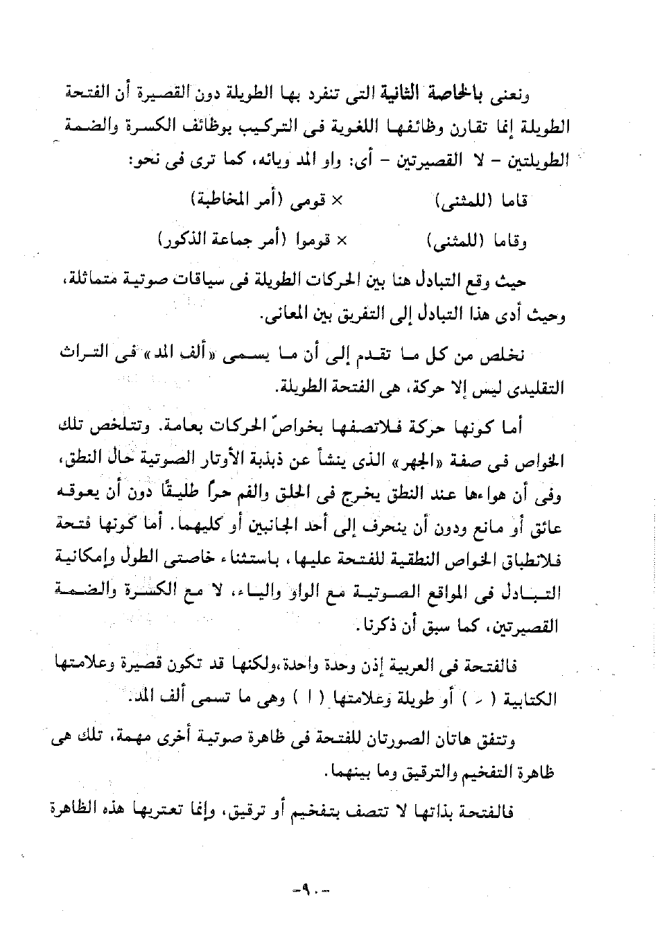ونعني بالخاصة الثانية التي تنفرد بها الطويلة دون القصيرة أن الفتحة الطويلة إنما تقارن وظائفها اللغوية في التركيب بوظائف الكسرة والضمة الطويلتين -لا القصيرتين- أي: واو المد ويائه، كما ترى في نحو: