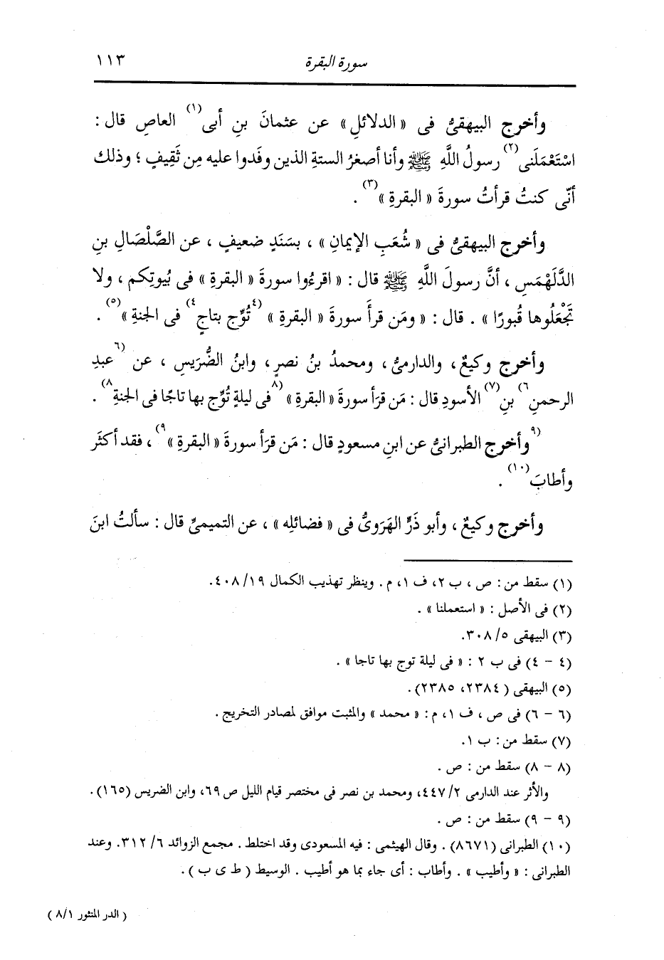 وأخرج الطبراني عن ابن مسعود قال : من قرأ سورة البقرة فقد أكثر وأطاب.