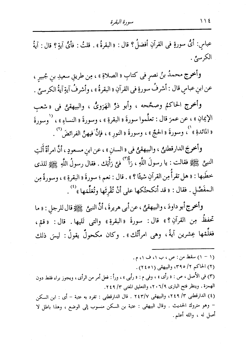 وأخرج الحاكم وصححه وأبو ذر الهروي والبيهقي في شعب الإيمان عن عمر قال : تعلموا سورة البقرة سورة النساء وسورة الحج وسورة وسورة النور فإن فيهن الفرائض.