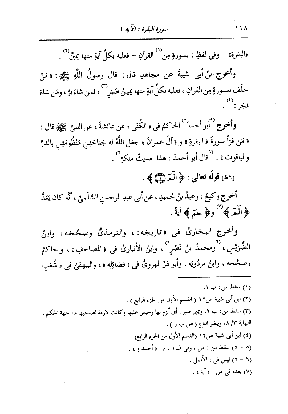 وأخرج أحمد والحاكم في الكنى عن عائشة عن النَّبِيّ صلى الله عليه وسلم قال من قرأ سورة البقرة وآل عمران جعل الله له جاحين منظومين بالدر والياقوت قال أبو أحمد : هذا الحديث منكر.
