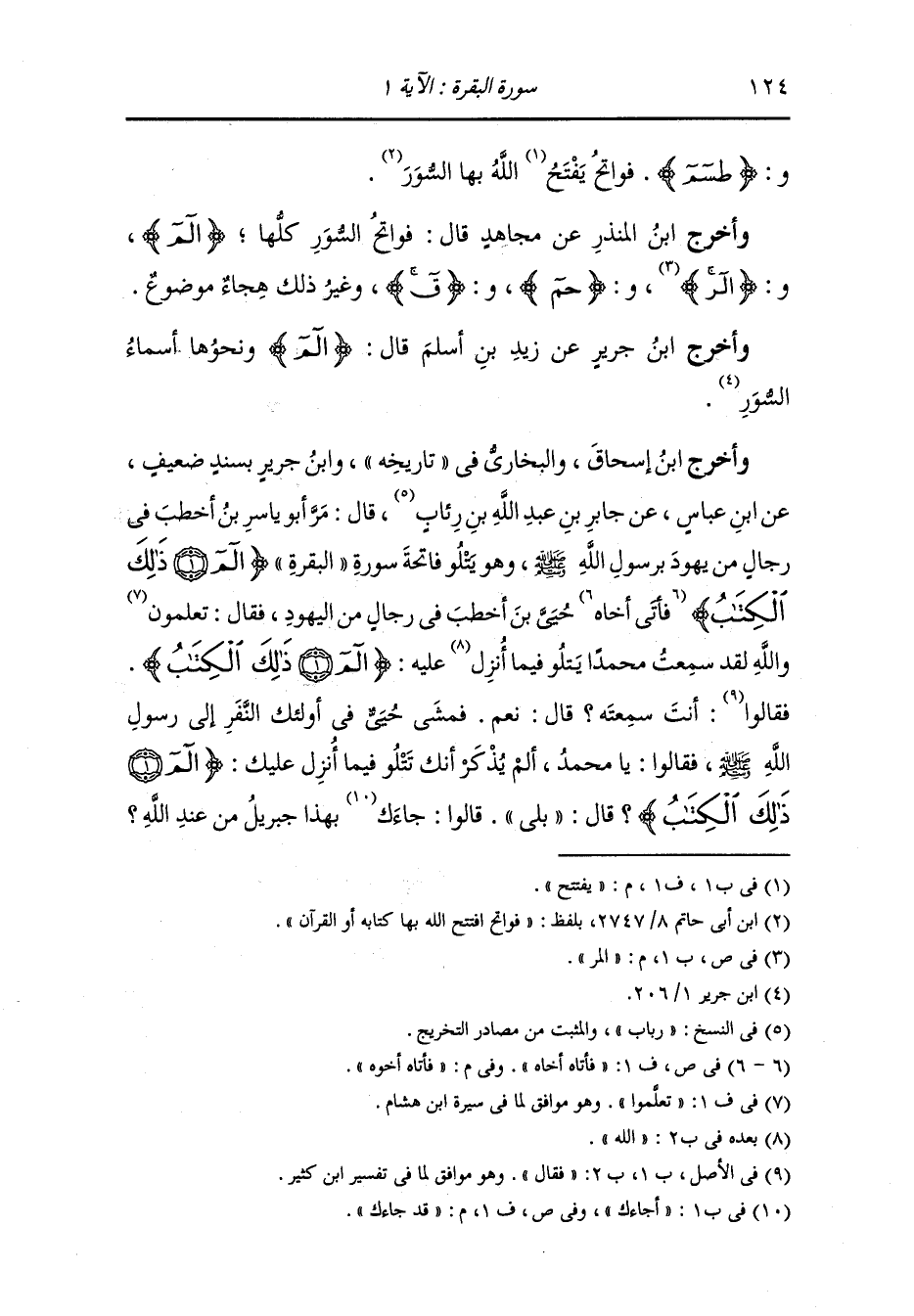 وأخرج ابم إسحاق والبخاري في تاريخه ، وَابن جَرِير بسند ضعيف عن ابن عباس ، عَن جَابر بن عبد الله بن رباب قال : مر أبو ياسر بن أخطب في رجال من يهود برسول الله صلى الله عليه وسلم وهو يتلو فاتحة سورة البقرة {الم ذلك الكتاب} فأتاه أخوه حيي بن