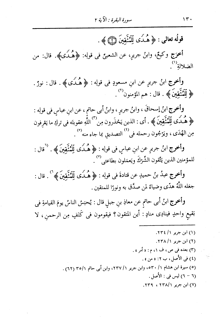 وأخرج ابن جرير عن ابن عباس في قوله {هدى للمتقين} قال : للمؤمنين الذين يتقون الشرك ويعملون بطاعتي.