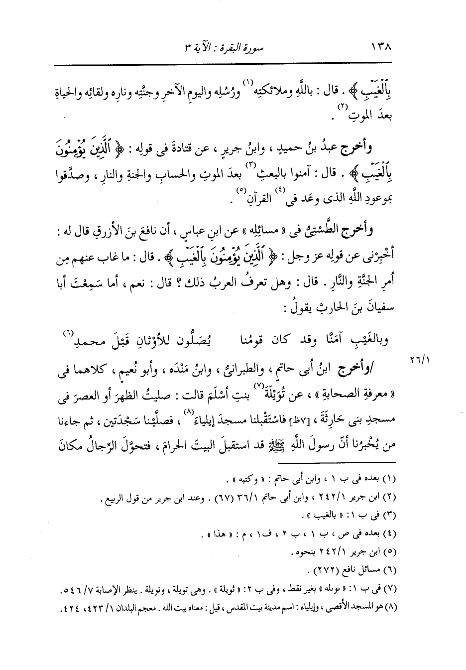 وأخرج الطستي في مسائله عن ابن عباس أن نافع بن الأزرق قال له : أخبرني عن قوله عز وجل {الذين يؤمنون بالغيب} قال : ما غاب عنهم من أمر الجنة والنار قال وهل تعرف العرب ذلك قال : نعم ، أما سمعت أبا سفيان بن الحرث يقول :
